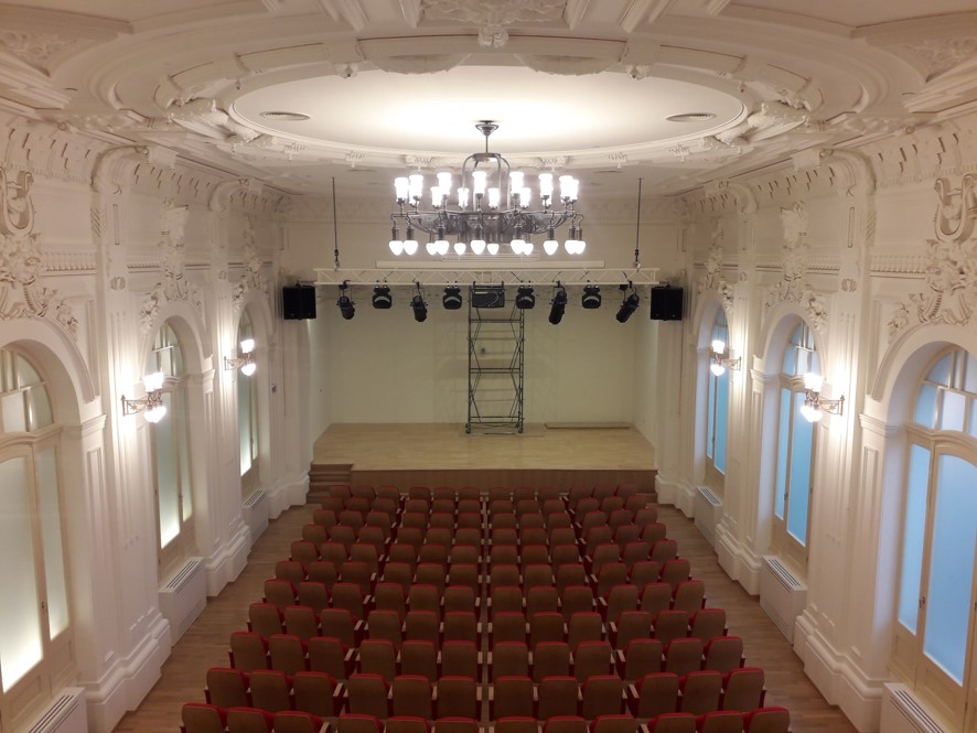 Veličina pozornice: 5,8 × 9,45 m (51,4 m²) odignuta od gledališta 70 cm