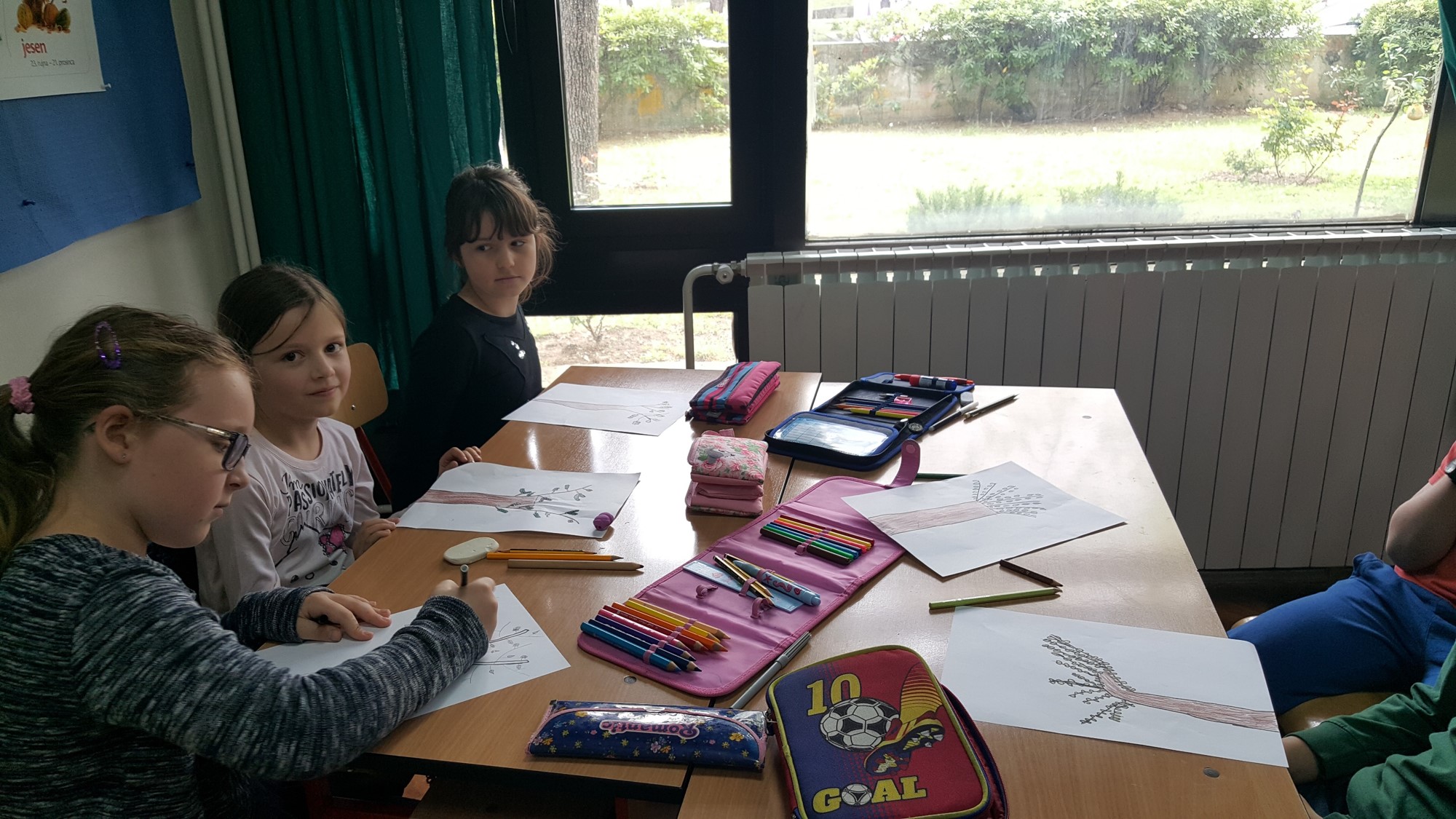 Učenici su u skupinama opisivali cvatnju, berbu i preradu plodova masline, ljekovitost lista masline i ljekovitost maslinovog ulja. Na kraju radionice, učenici su crtali zamišljeno stablo masline, hraniteljice našeg priobalja.