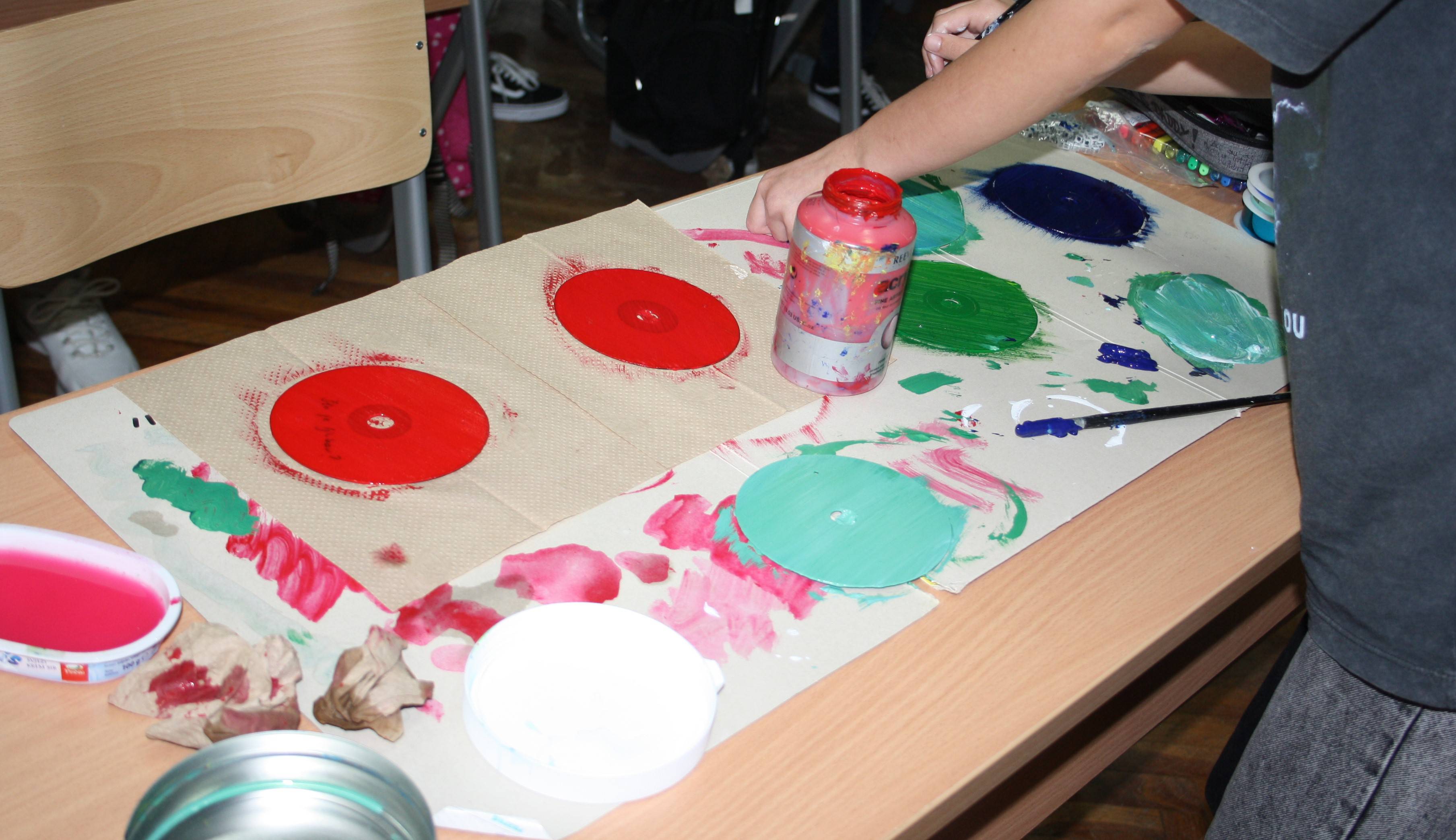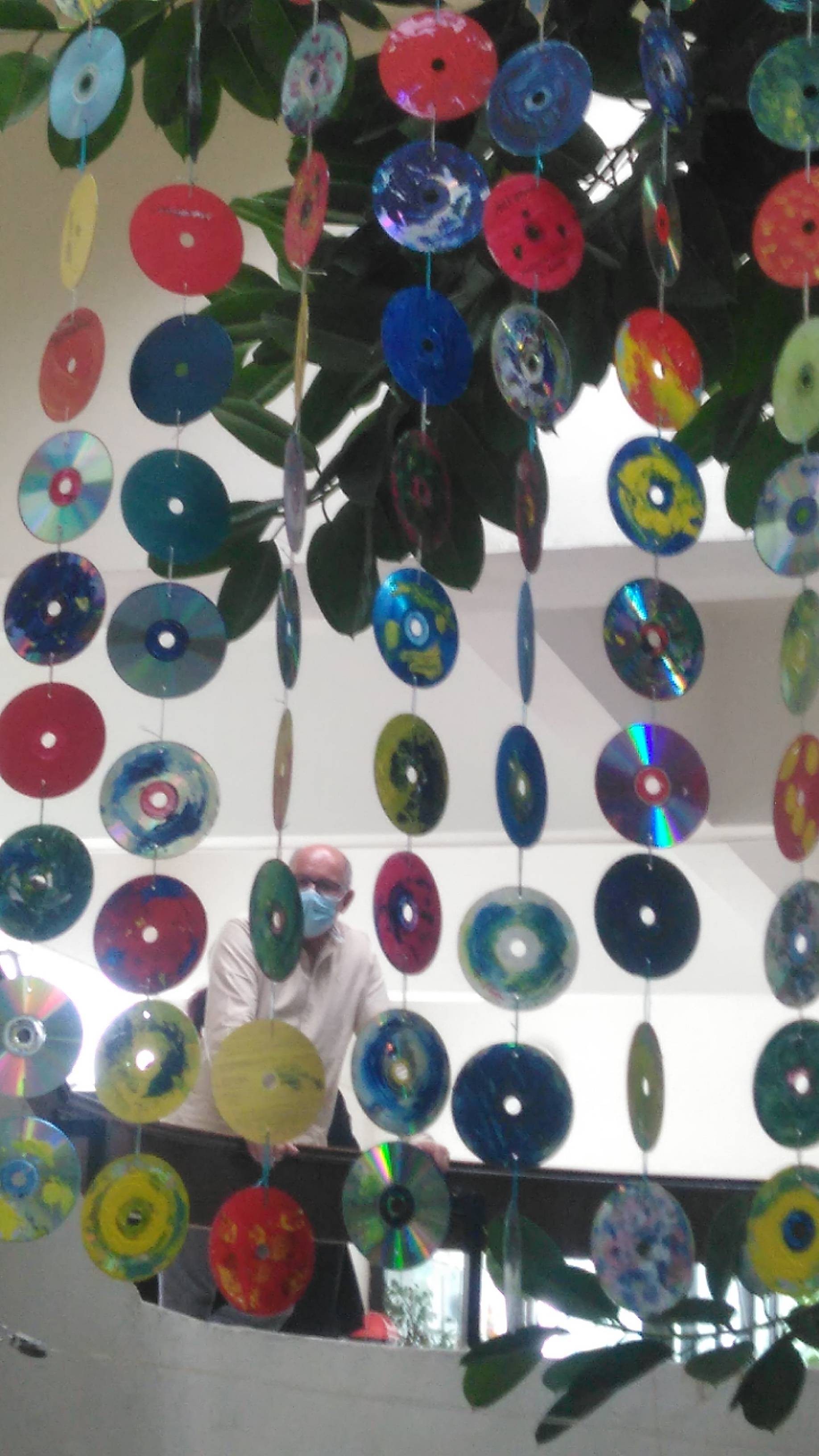 Od starih cd-ova učenici su izradili ukrasnu zavjesu za atrij škole.