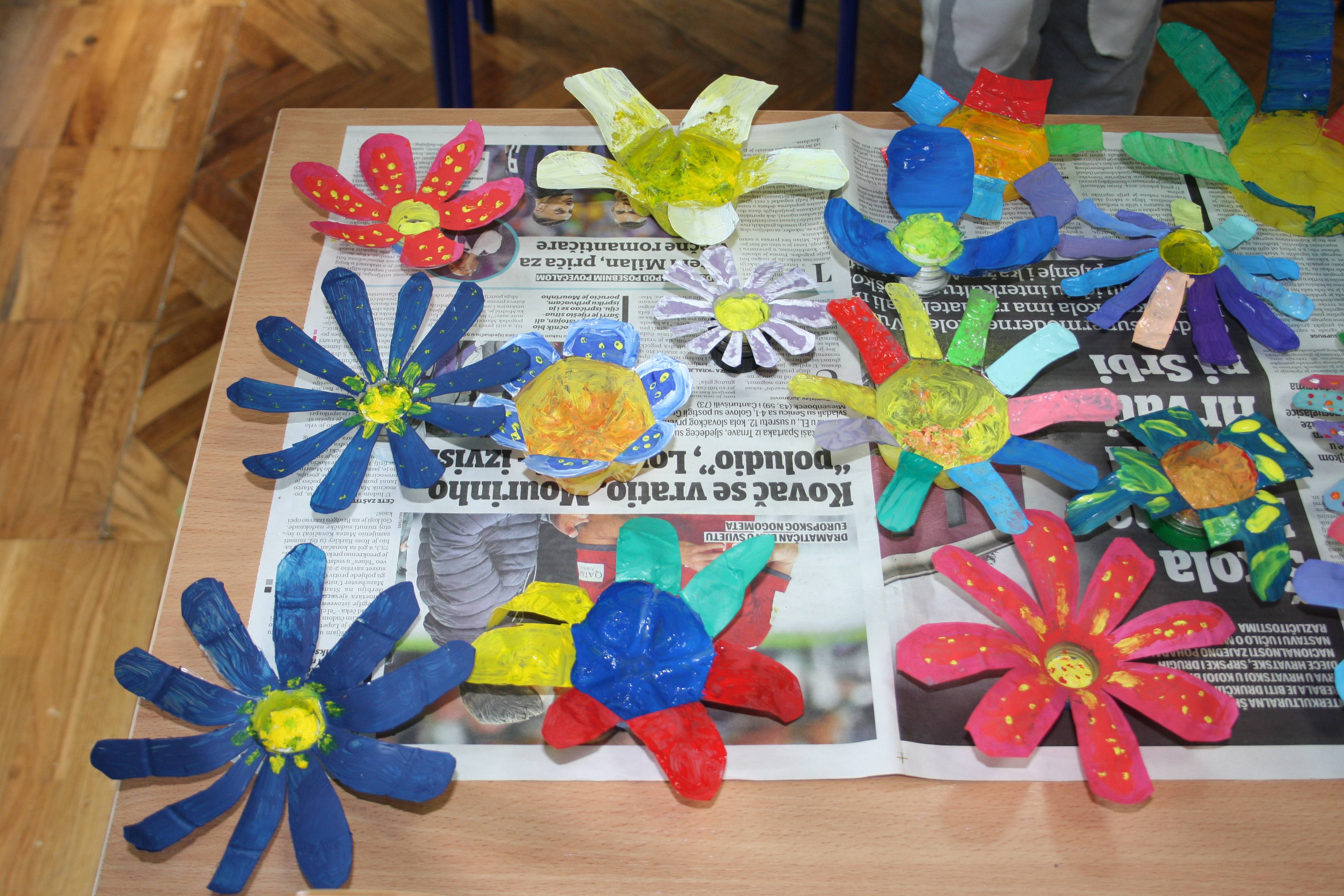 Učenici su od otpada izradili cvjetove kojima će ukrasiti učionicu.