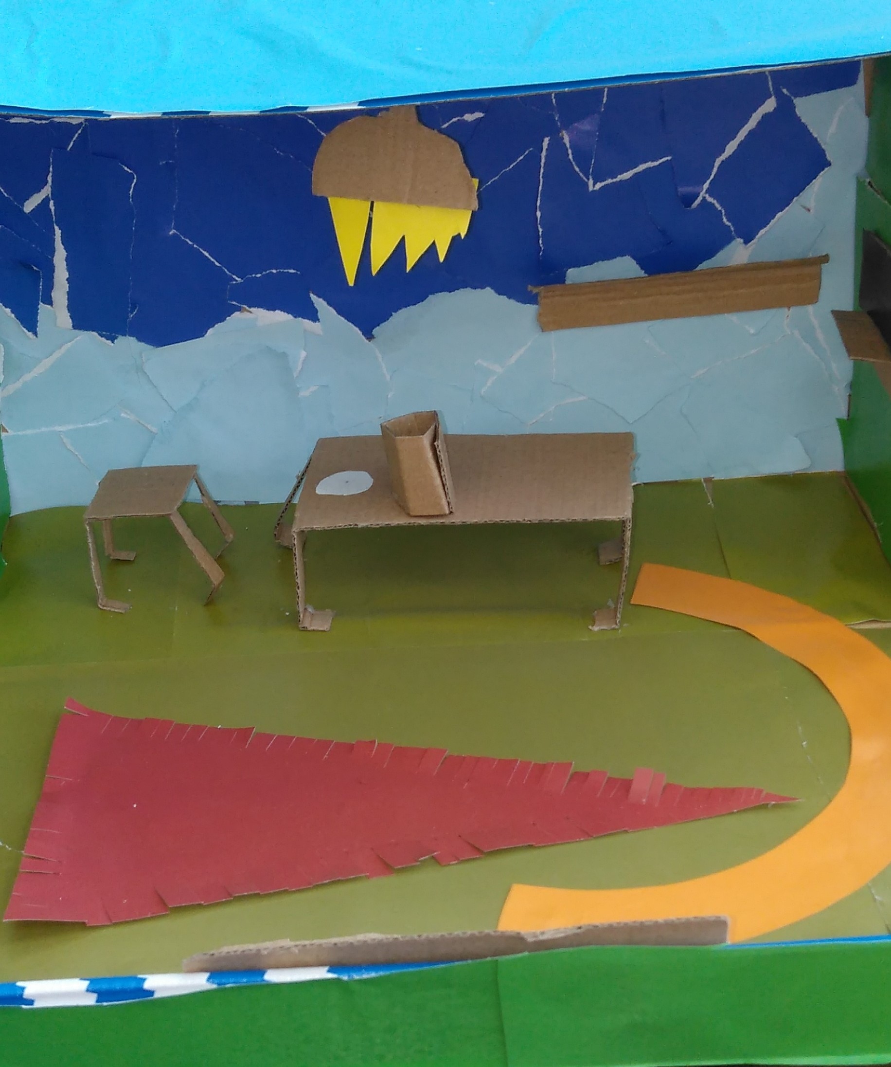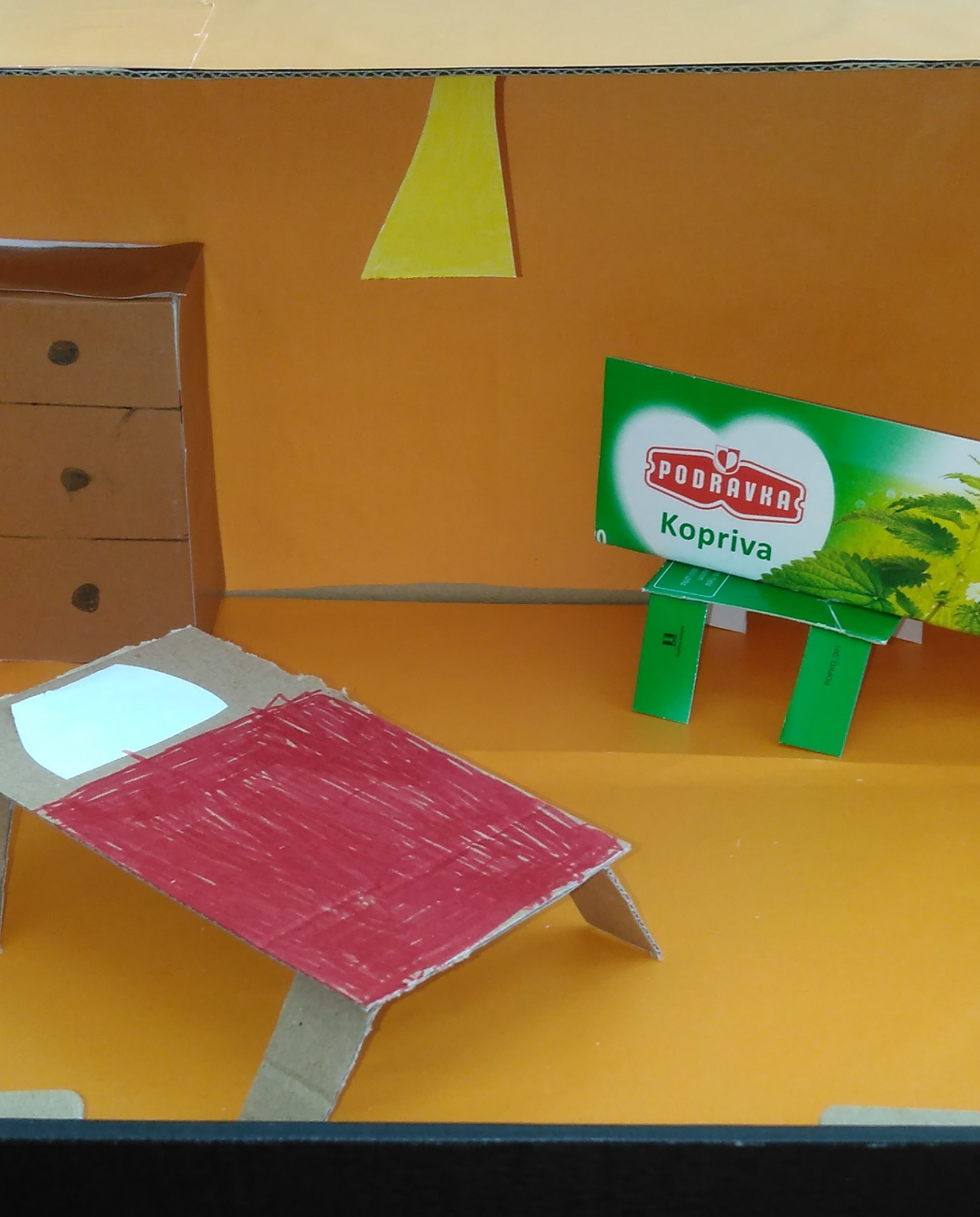 Učenici  7.b razreda od otpadnog materijala izradili su makete vezane uz nastavnu jedinicu - Masa/ volumen i prostor- proporcionalnost. Samostalno su odabrali rad u paru. Motivirani su zanimanjem dizajnera unutarnjeg prostora /interijera/.  Zadovoljni svojim radom poželjeli su napraviti malu izložbu u atriju  škole, a klikom na opširnije pogledajte fotografije njihovih radova.