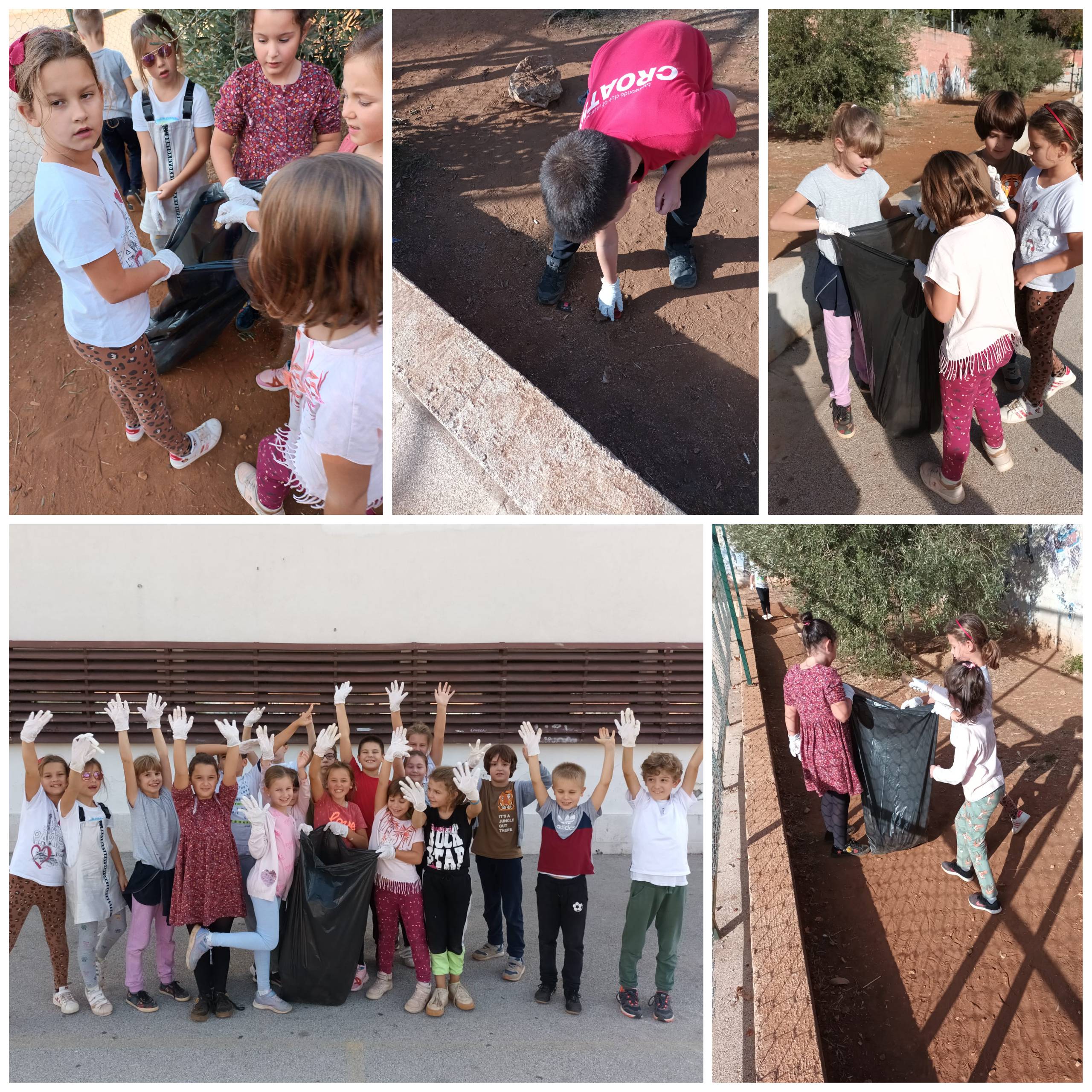 Učenici 2.c razreda s učiteljicom Kristinom Jakšić, a u sklopu Eko grupe, sudjelovali su u akciji čišćenja školskog igrališta i maslinika. Akcija se održala u srijedu, 2. studenoga 2022. godine.