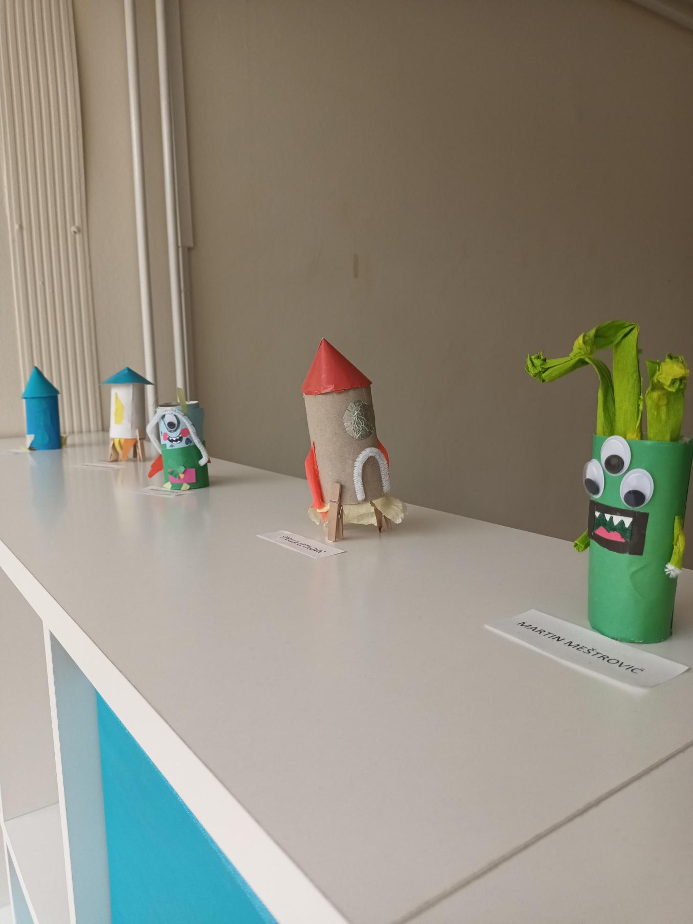 Nakon gostovanja studenata s Prirodoslovno-matematičkog fauklteta u Splitu koji su održali radionicu Mala škola astronomije, učenici 2.c razreda su od kartonskih rola izradili astronaute, izvanzemaljce i rakete.