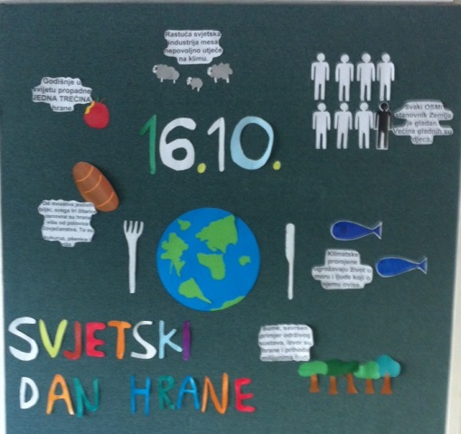 Podijeljeni u skupine učenici su pripremali različite dijelove panoa kako bi izradili promjenjivi eko pano prema dežurstvu. Odlučili su obilježiti Svjetski dan hrane...