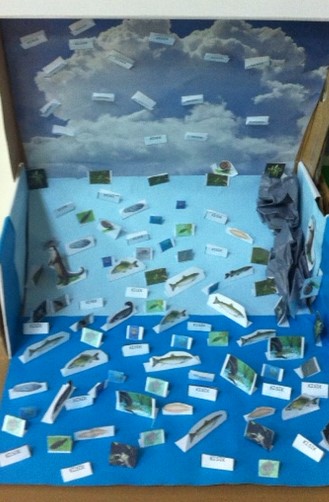 Radom u skupinama učenici 6. a su ekološku temu - ONEČIŠĆENOST KOPNENIH VODA - obradili izradom modela te reciklažom starih kutija za obuću...