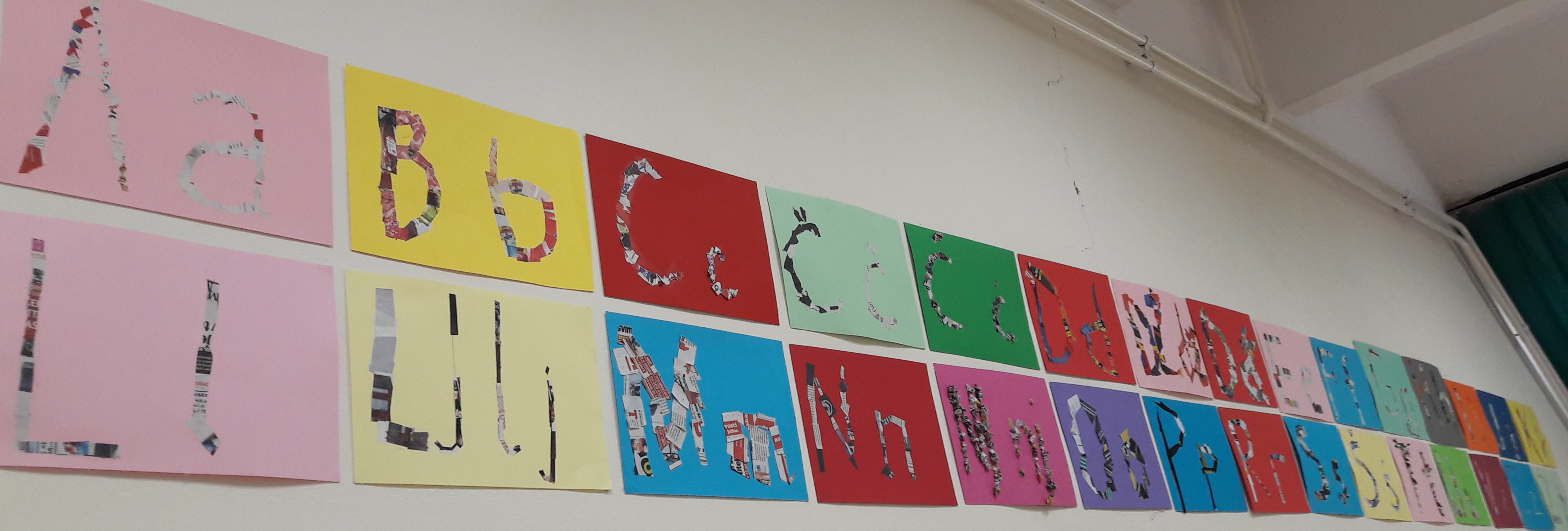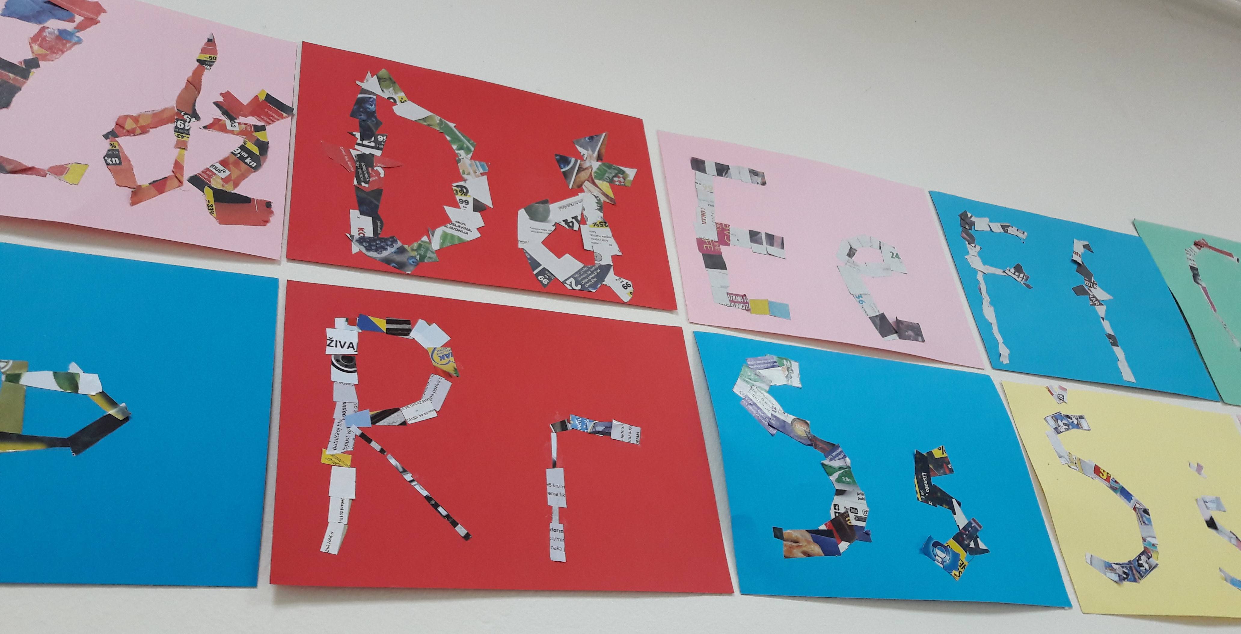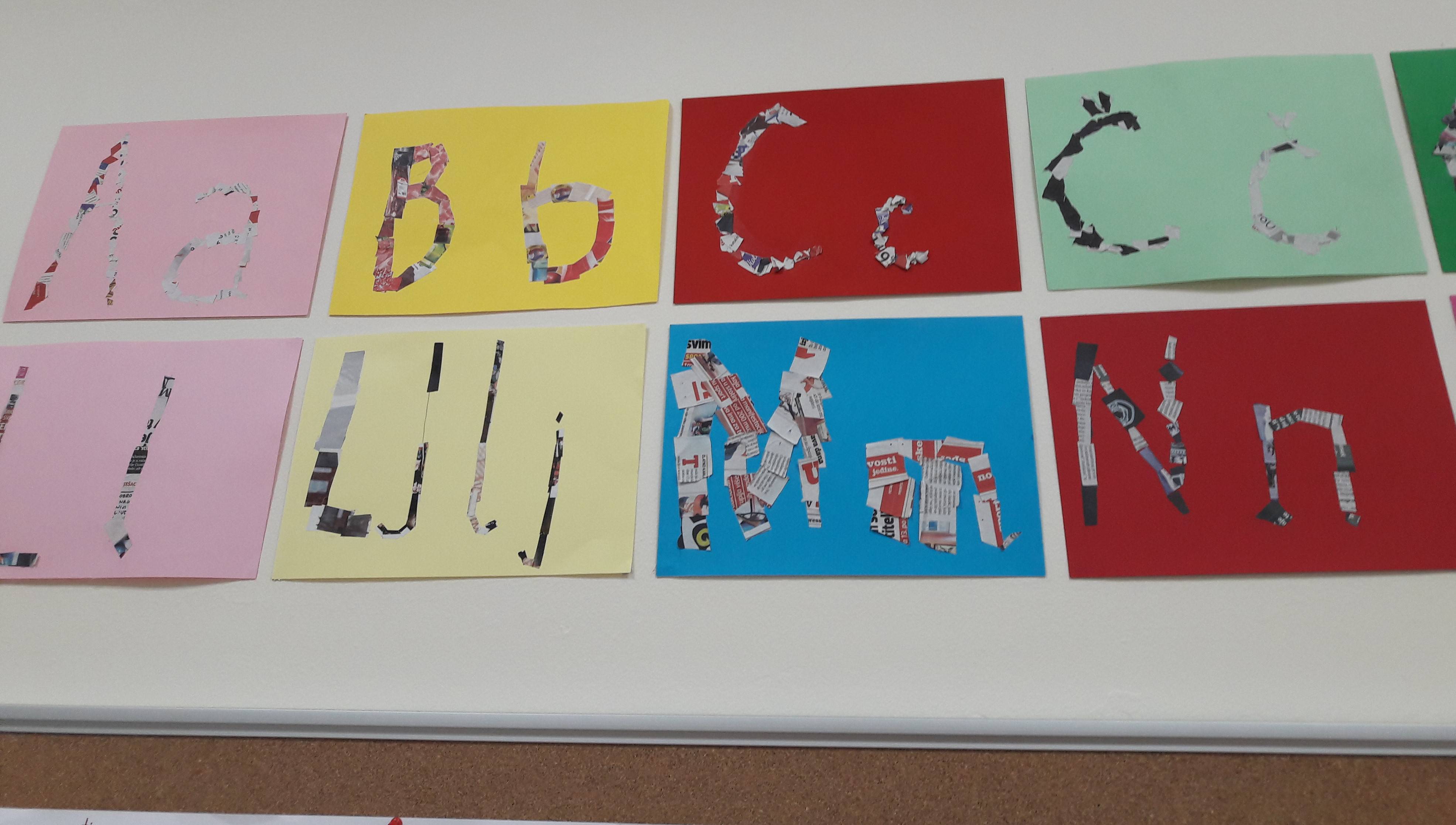 Učenici 1. c na maštovit način utvrđuju slova abecede pri čemu ih izrađuju od starog novinskog papira i njima ukrašavaju učionicu...