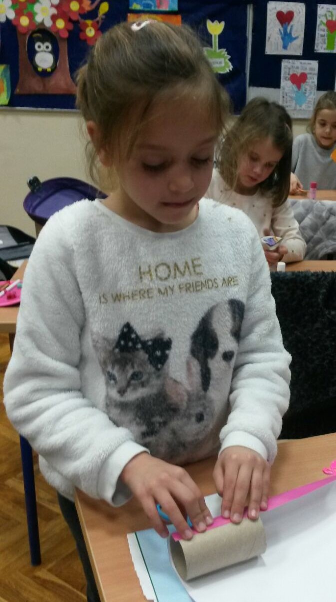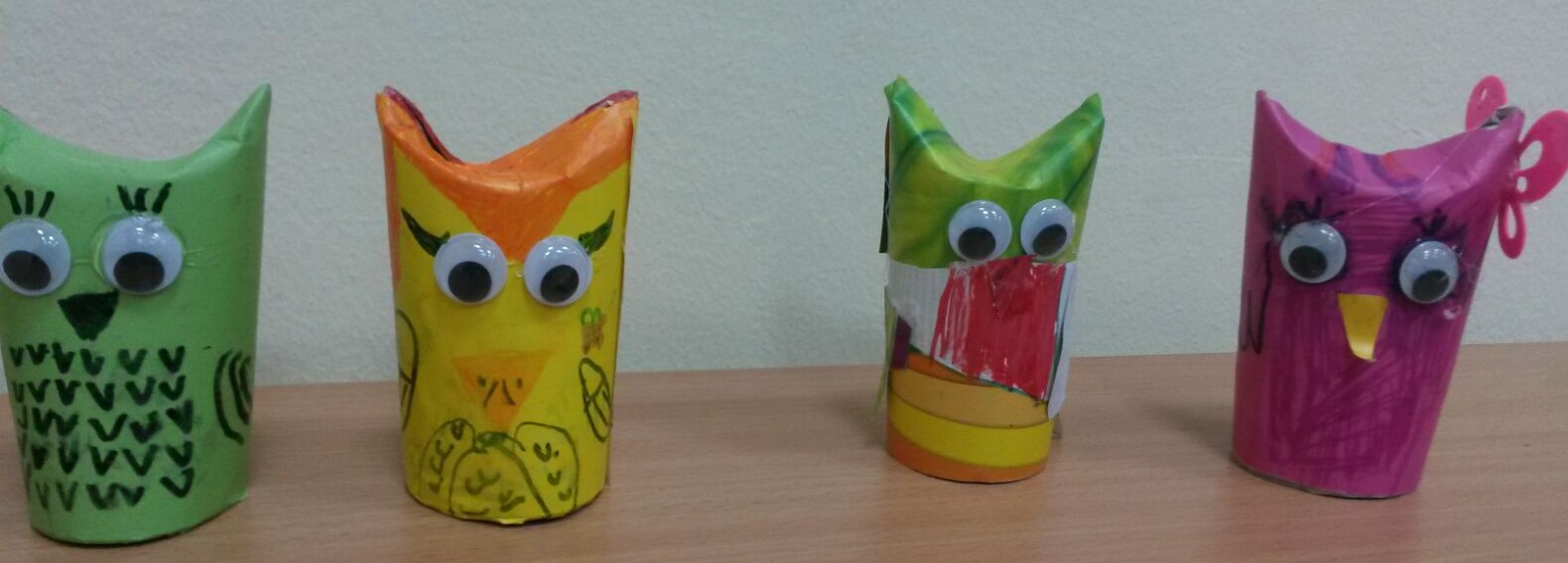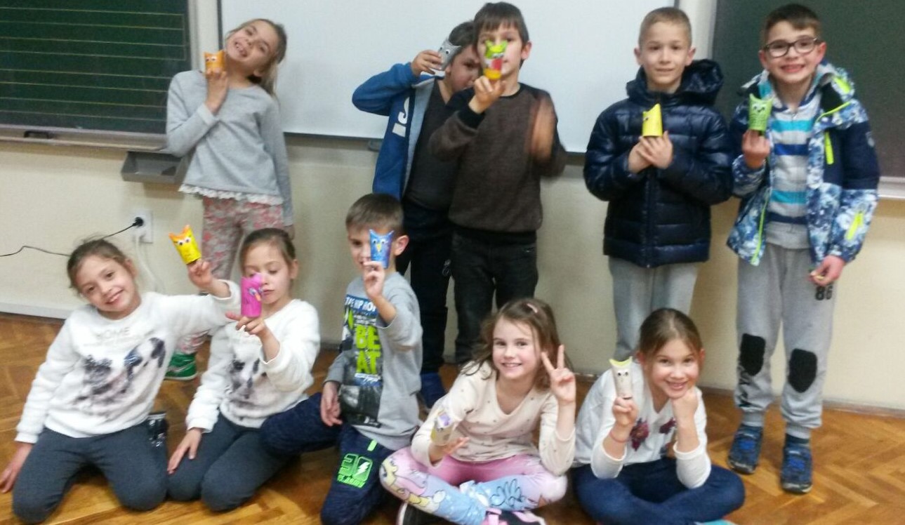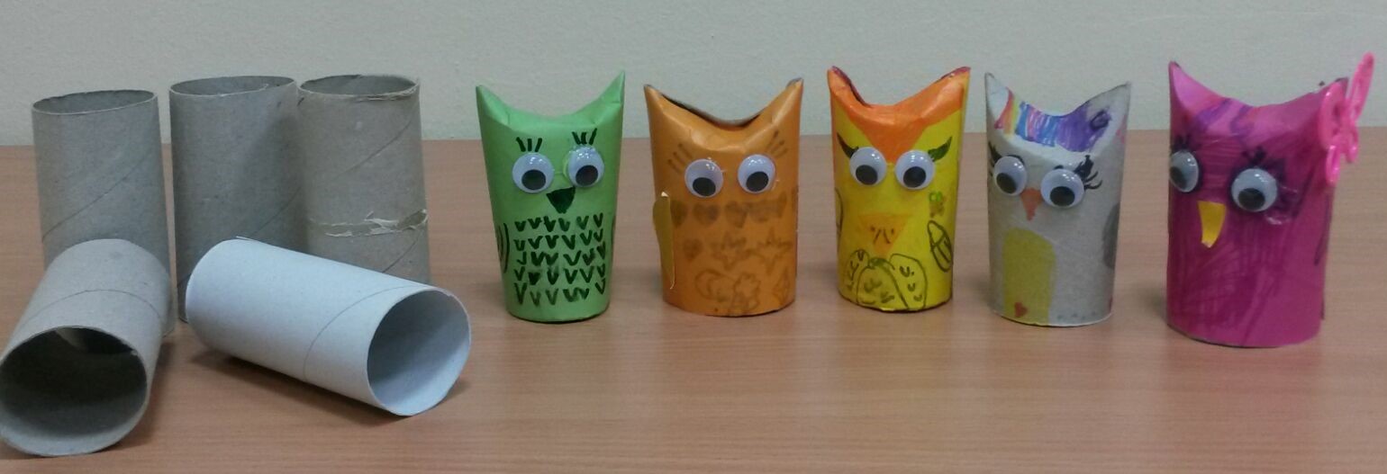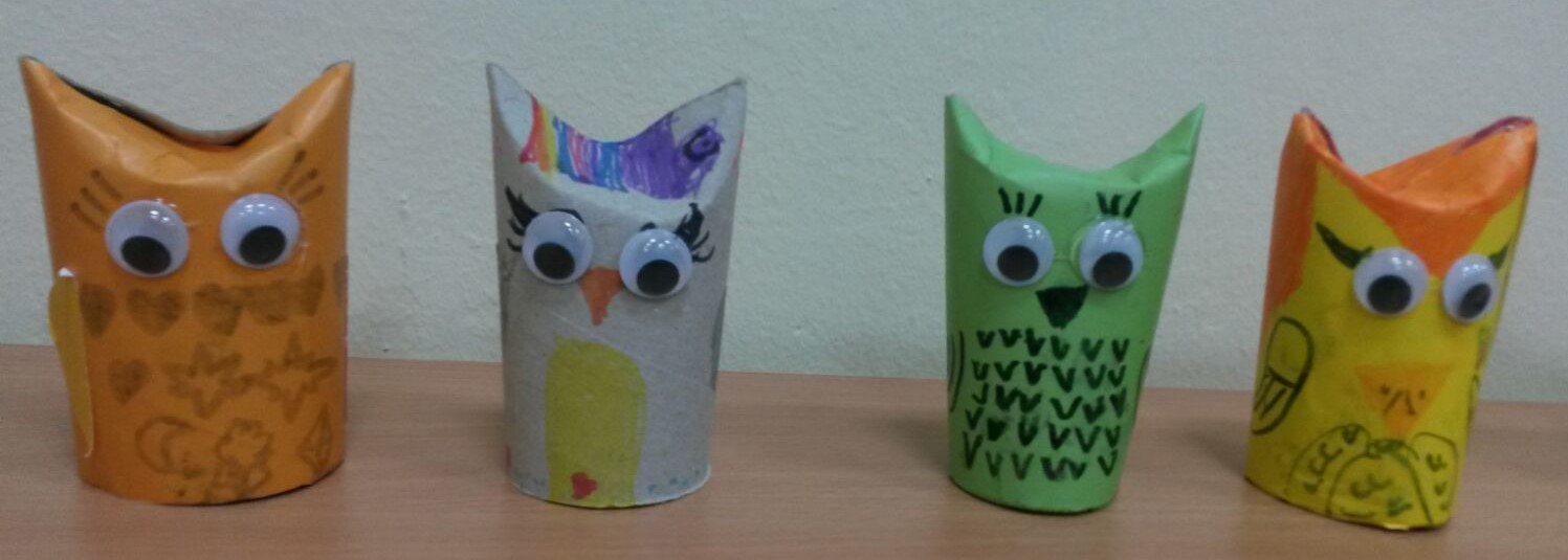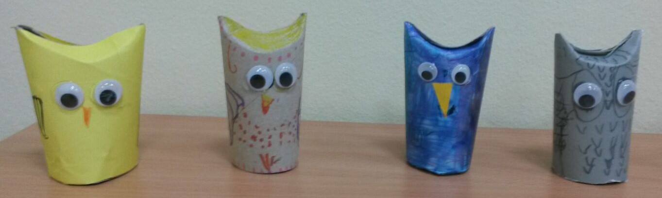 Tijekom izvannastavne aktivnosti učenici 1.b oporabili su tuljke od papira tako što su izradili sove...