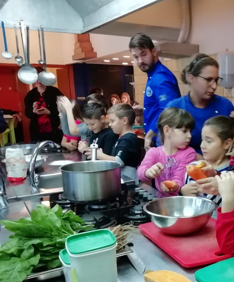 Učenici su sudjelovali u pripremi, kuhanju i degustaciji zdrave hrane kao što su juha od bundeve, tjestenina s plodovima mora, kruh sa žitaricama i voćna salata.