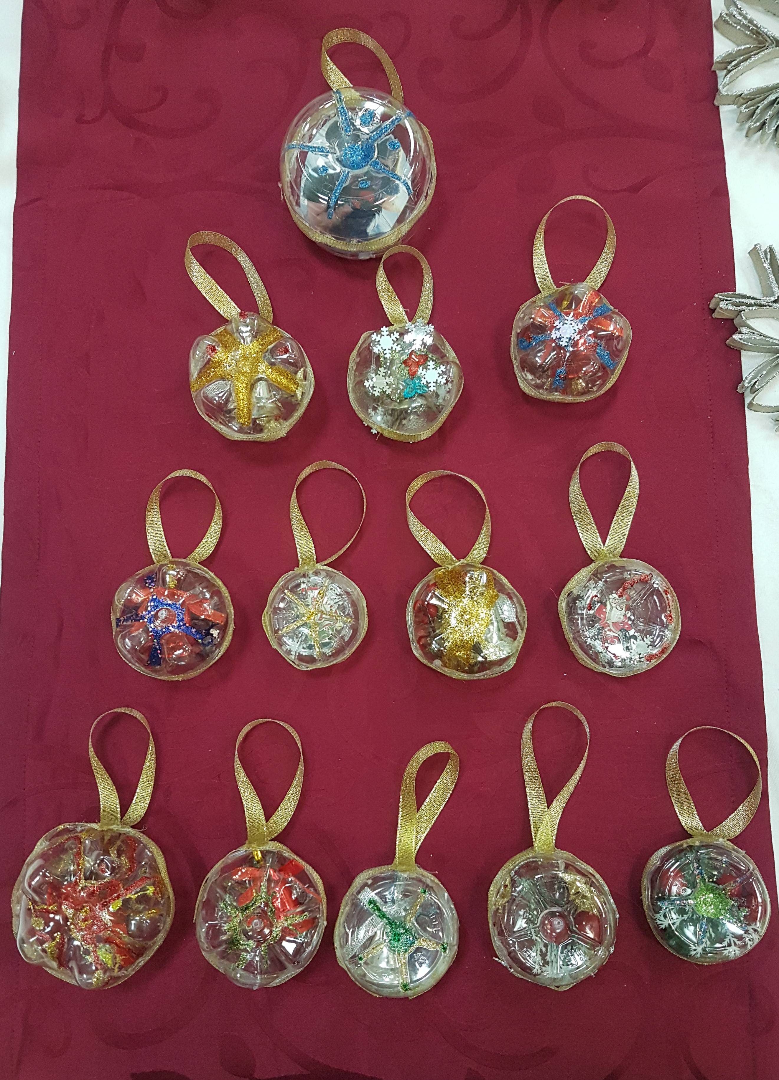 Učenici 2.b uključeni u izvannastavnu aktivnost - EKO GRUPA i učenici 2.c uključeni u izvannastavnu aktivnost - MODELARI izradili su eko ukrase od otpadnog materijala.
