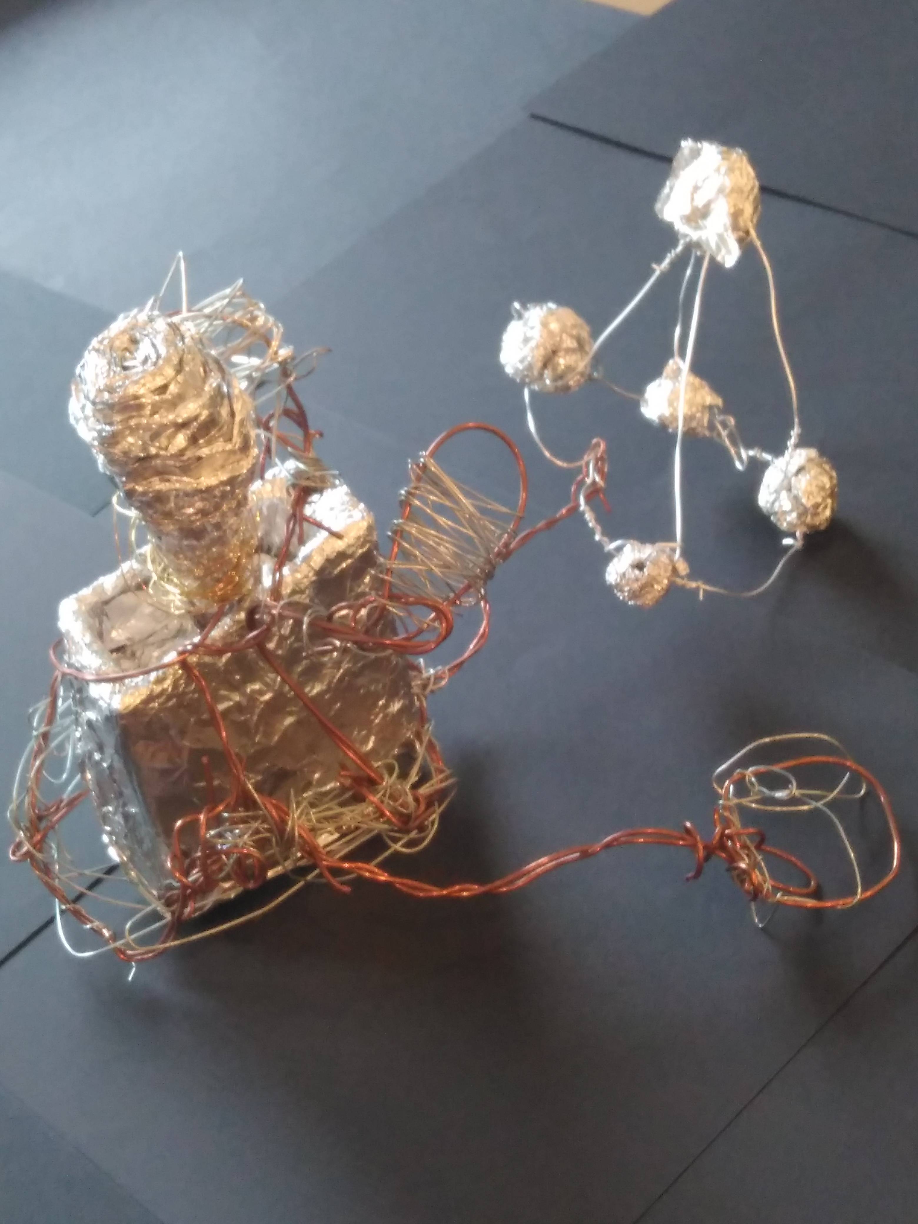 Učenici 5. i 6. razreda izadili su skulpture od ostataka žice i aluminijske folije te modele kristala oporabom kartona tijekom sata Likovne kulture.