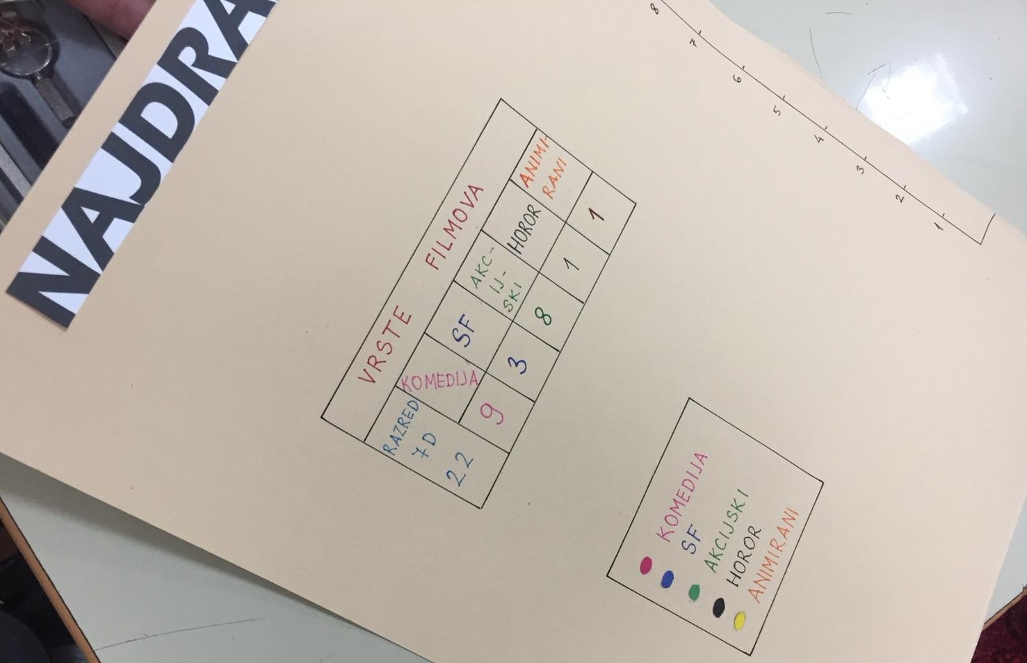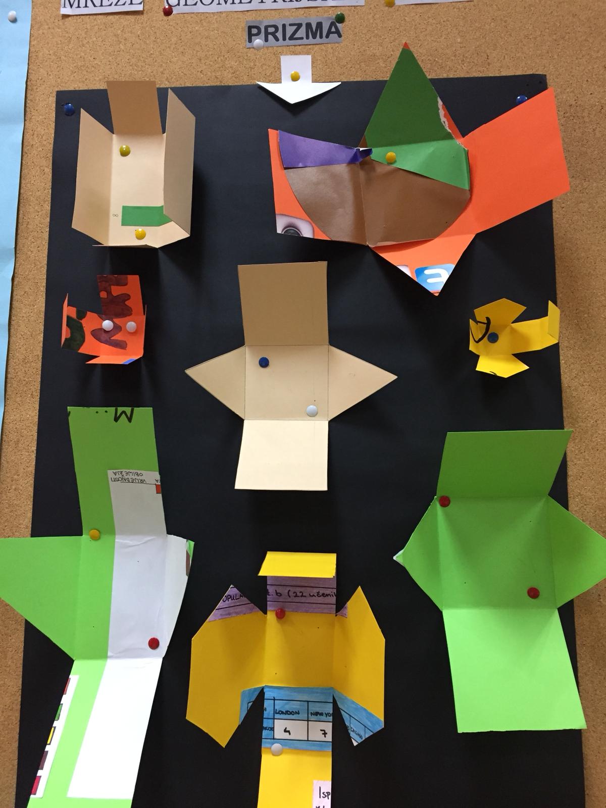 Učenici 8.b razreda tijekom sata matematike oporabili su stare hamer papire tako da su ponavljali matematiku i izradili mrežu različitih prizmi te ih izložili na panou...