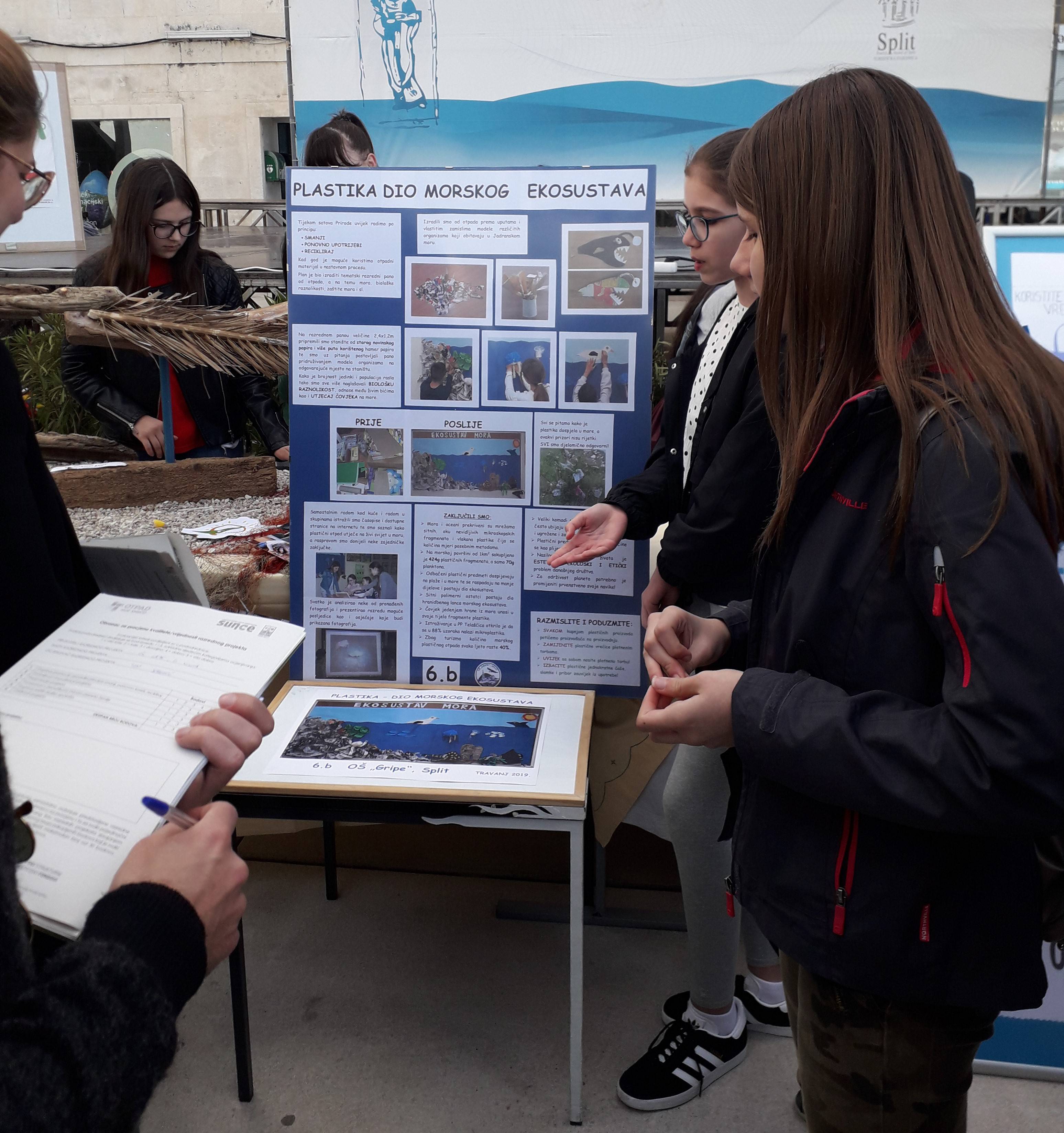 Učenici 6.b razreda uz učiteljicu Maritu Maleš osmislili su projekt pod nazivom Plastika - dio morskog ekosustava koji su prijavili na natječaj Udruge Sunce pod nazivom Prije i poslije - učenici za Dan planeta Zemlje 2019..