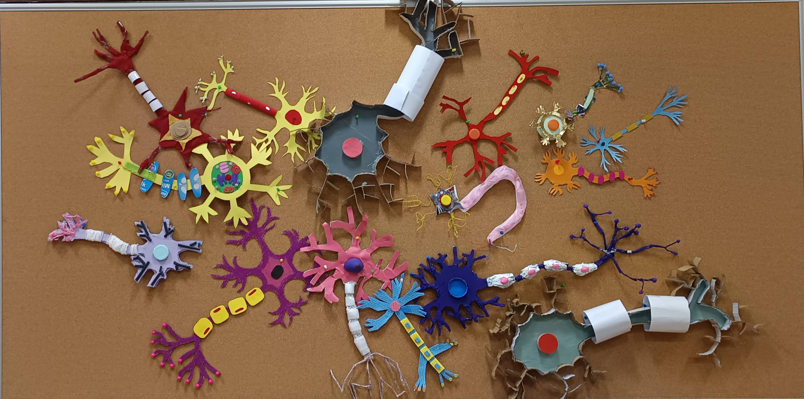 Učenici 8. b i c izradili su modele živčane stanice od otpadnih materijala. Modeliranjem naučili koji dijelovi je grade te koja je njihova uloga.