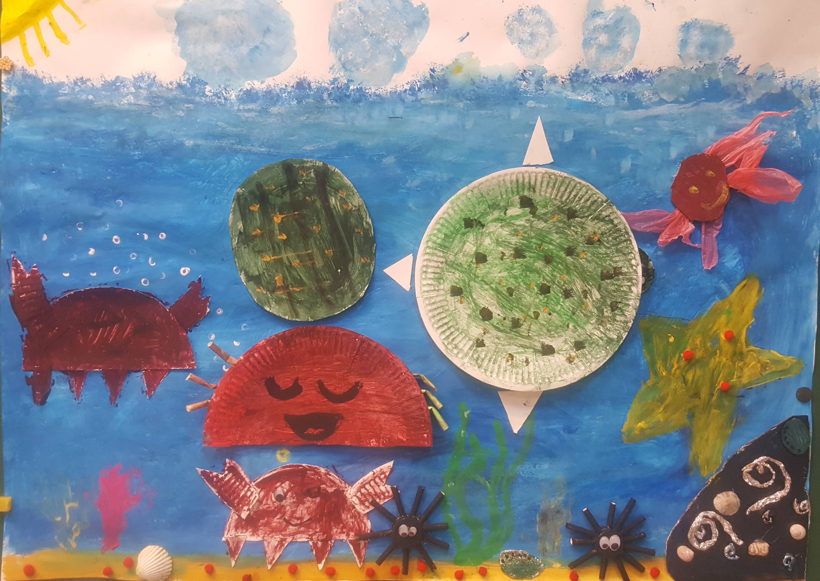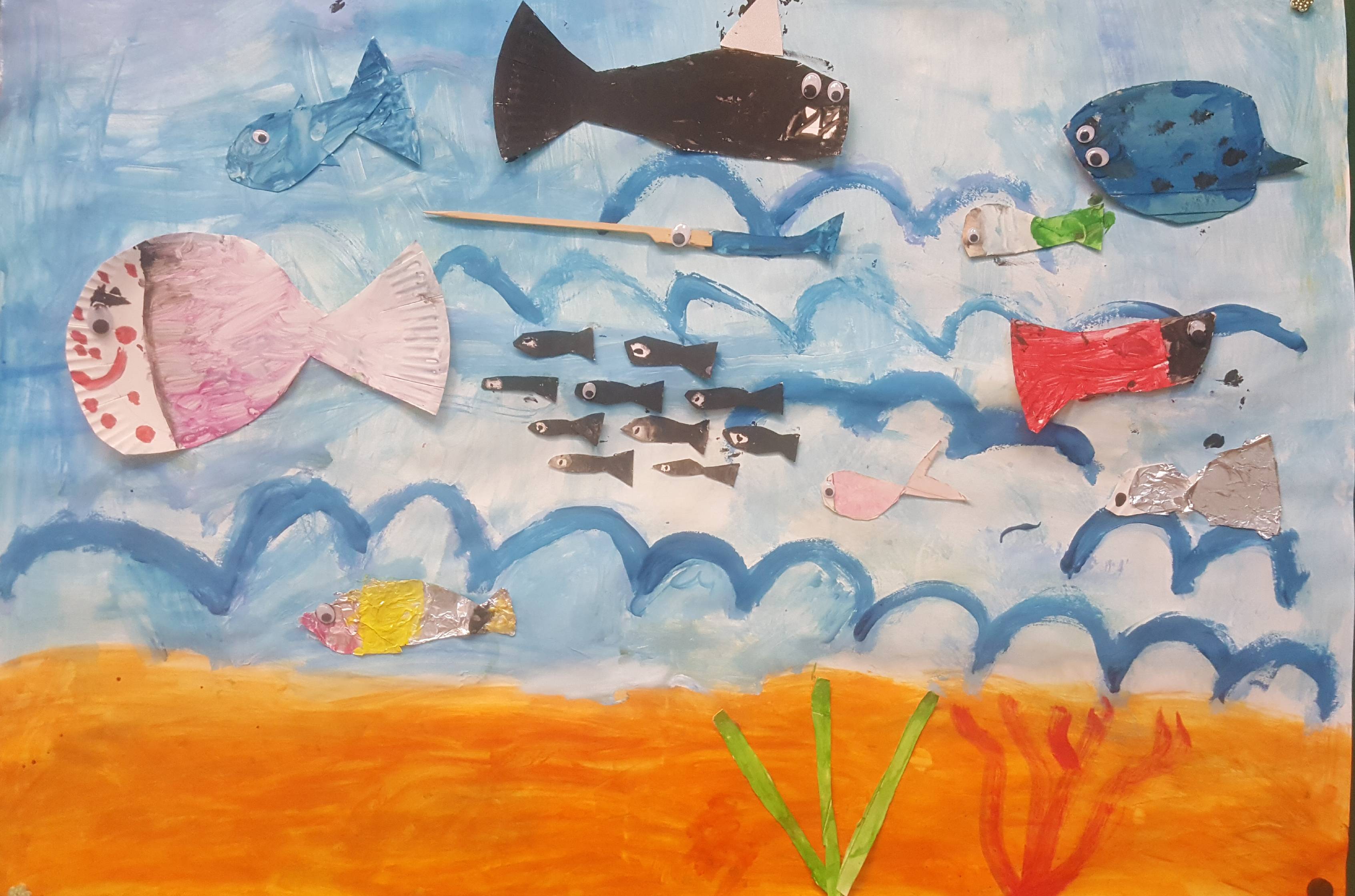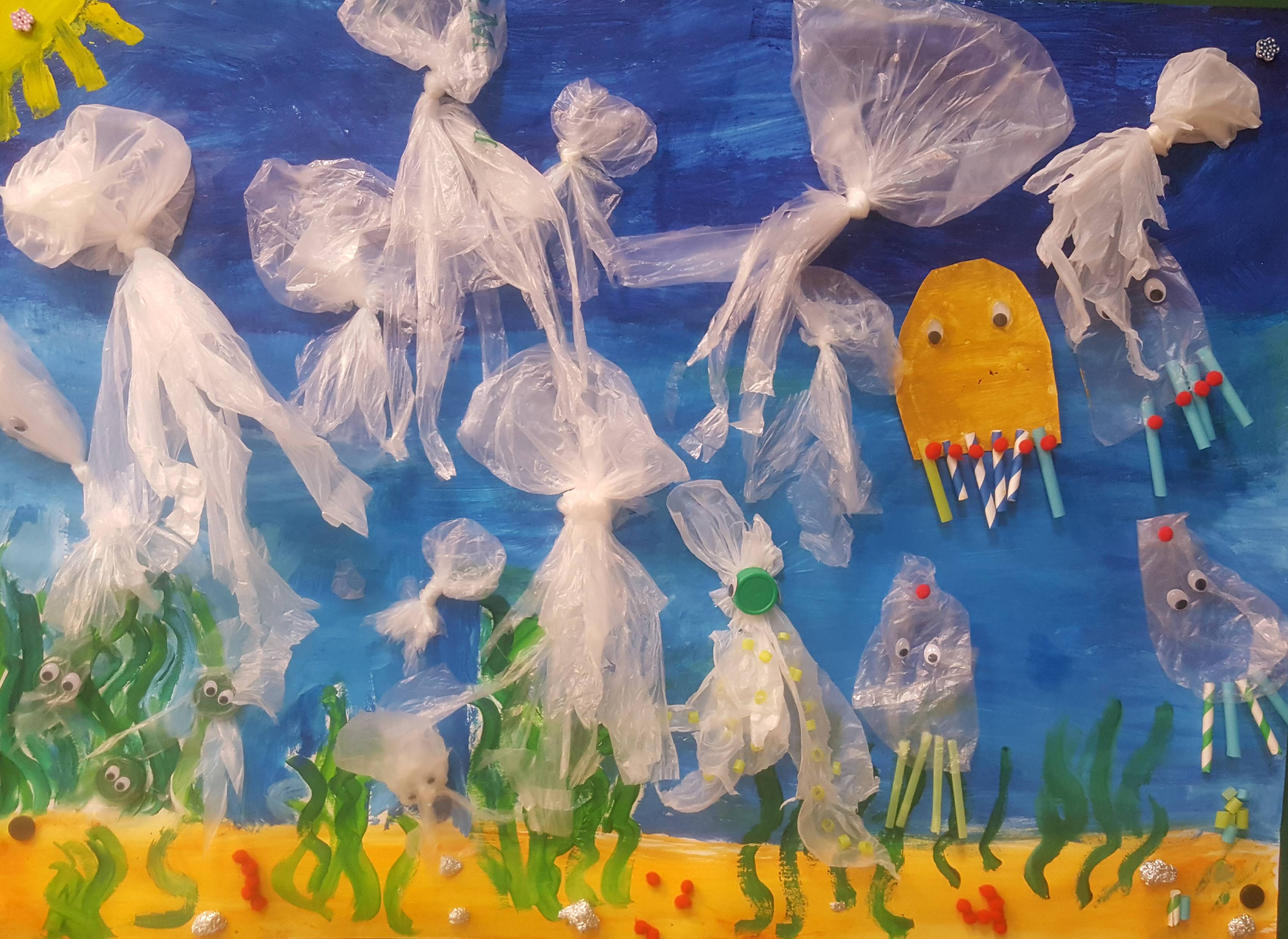 - izradili morske organizme od otpadnog materijala (eko likovna radionica - oporaba otpada)