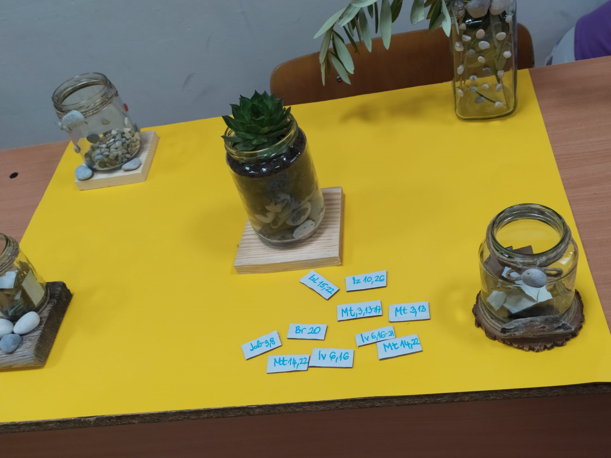 Uz moju pomoć djeca su pronalazila citate iz Biblije o moru koje smo prepisivali i izrezali. Napravili smo kutijice za citate koje smo ukrašavali kamenčićima i školjkama.