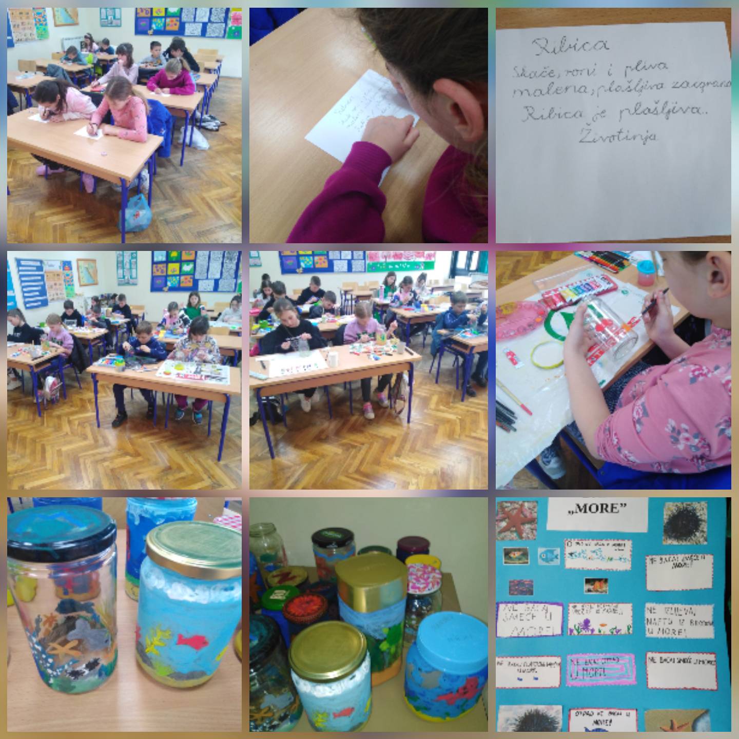 Učenici koji su sudjelovali na radionici „More u stihu i slici”, pisali su stihove na zadanu formu činkvine - petostih , oslikavali su staklenke i izradili su plakat s eko porukama.
