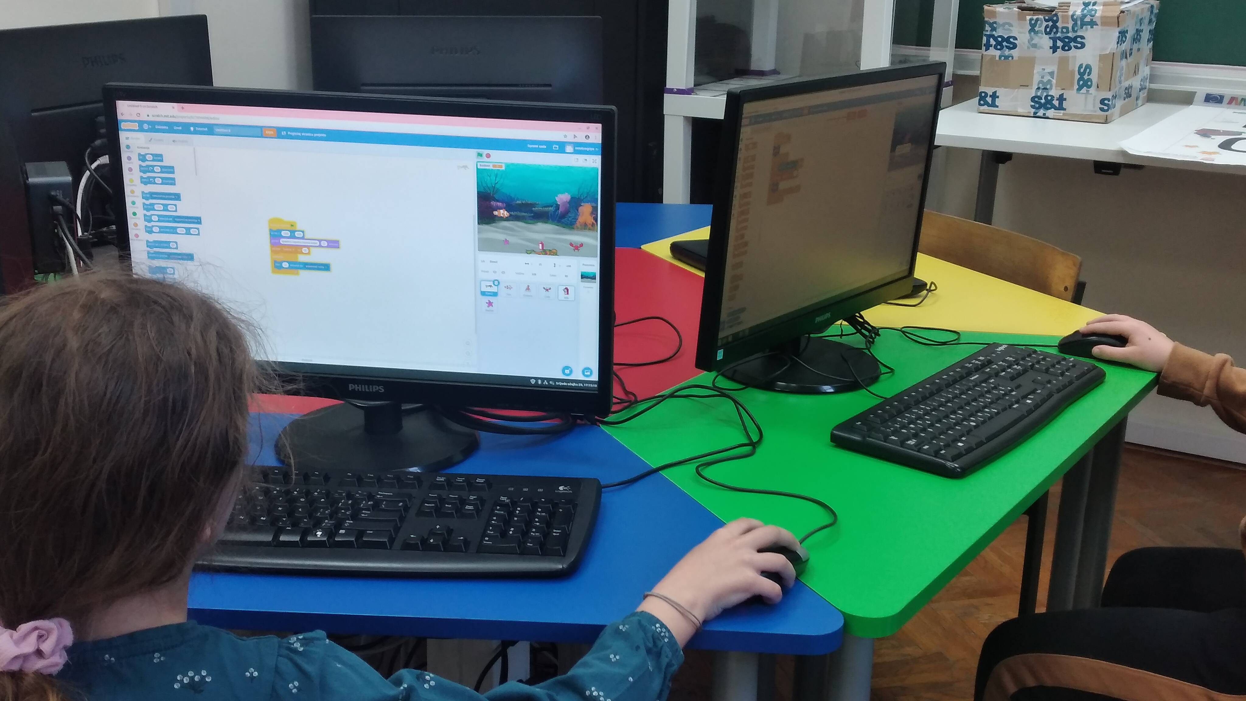 Preostali dio radionice učenici su izrađivali igru „Spasi morski svijet“ u programskom jeziku Scratch. Učenici su prema uputama izrađivali igru u kojoj glavni lik mora izvući sav otpad iz mora pri čemu skuplja bodove i tako omogućuje morskom svijetu život. Na kraju, učenici su osmislili svoju poruku vezanu uz zaštitu mora. Tu poruku morske životinje poručuju ljudima u igri.