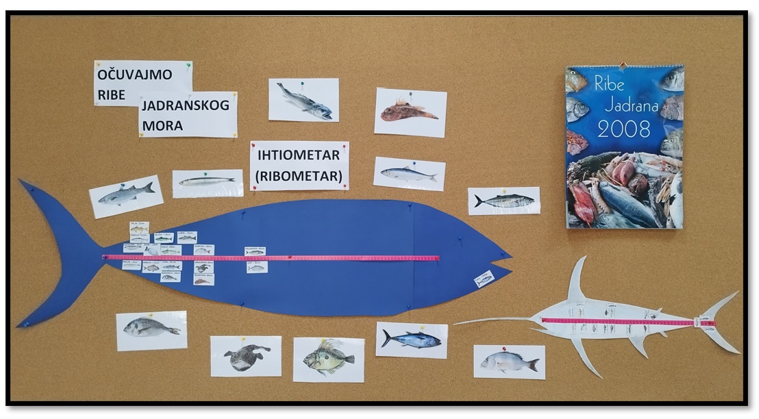Na velikom razrednom panou sada se i drugi učenici koji nisu sudjelovali u ovoj radionici mogu informirati o referentnim veličinama osnovnih vrsta ribe za izlov te listajući sačuvani kalendar iz 2008. godine mogu upoznati razrne vrste jadranske ribe.