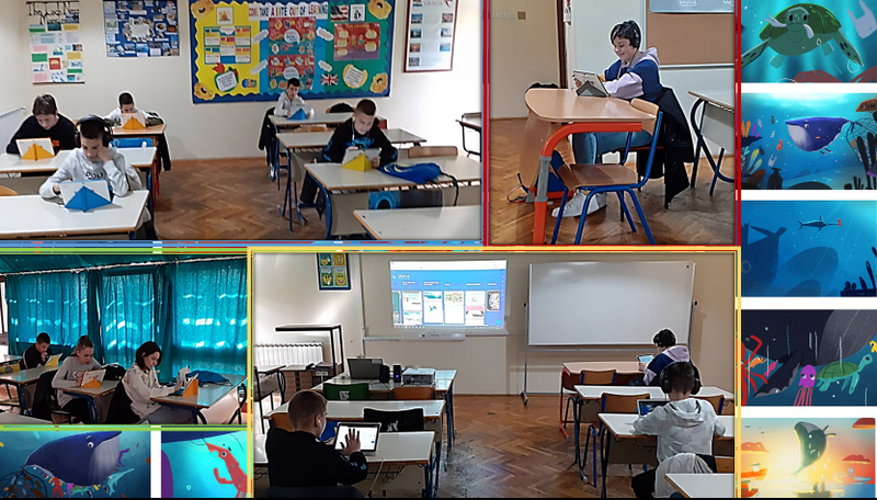 Radionica na engleskom jeziku pod nazivom „A Whale's Tale“ imala je za cilj podići svijest učenika o važnosti očuvanja mora, potrebi zaštite okoliša i prirode za opću dobrobit. Učenici su, koristeći tablete i slušalice, kroz različite interaktivne aktivnosti, upoznali neke od ugroženih vrsta mora i oceana, ali ujedno i uvježbavali jezične vještine.
