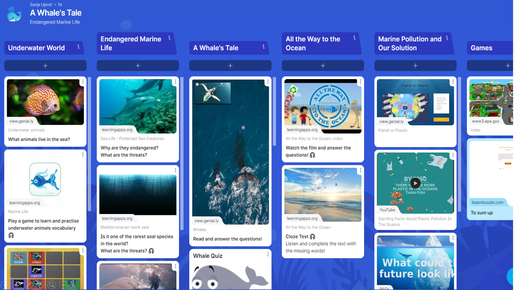 U Padletu su dobili različite zadatke i sadržaje izrađene u aplikacijama: Genially, LearningApps, Wordwall, Baamboozle. Aktivnosti su bile podijeljene u nekoliko dijelova: