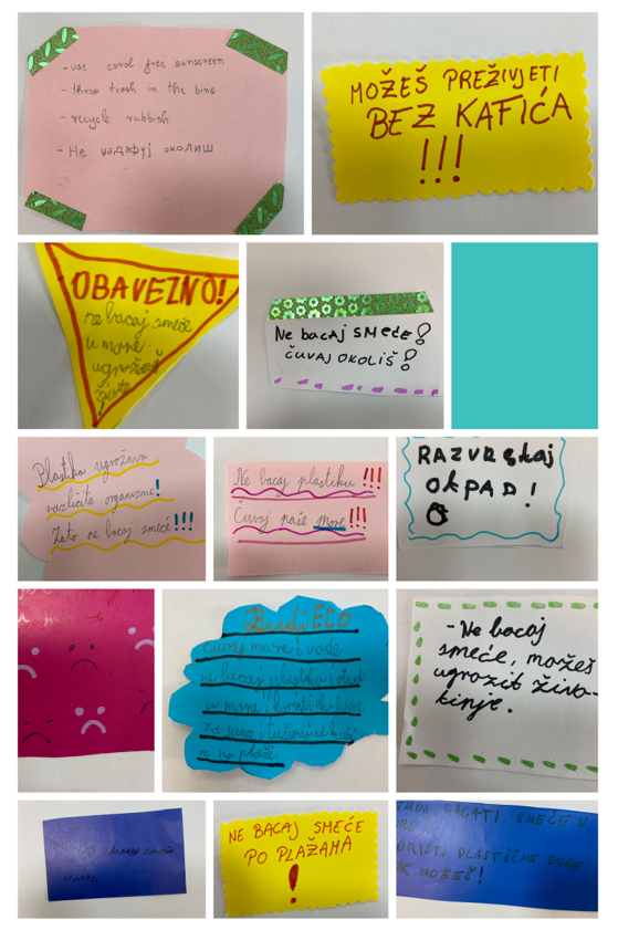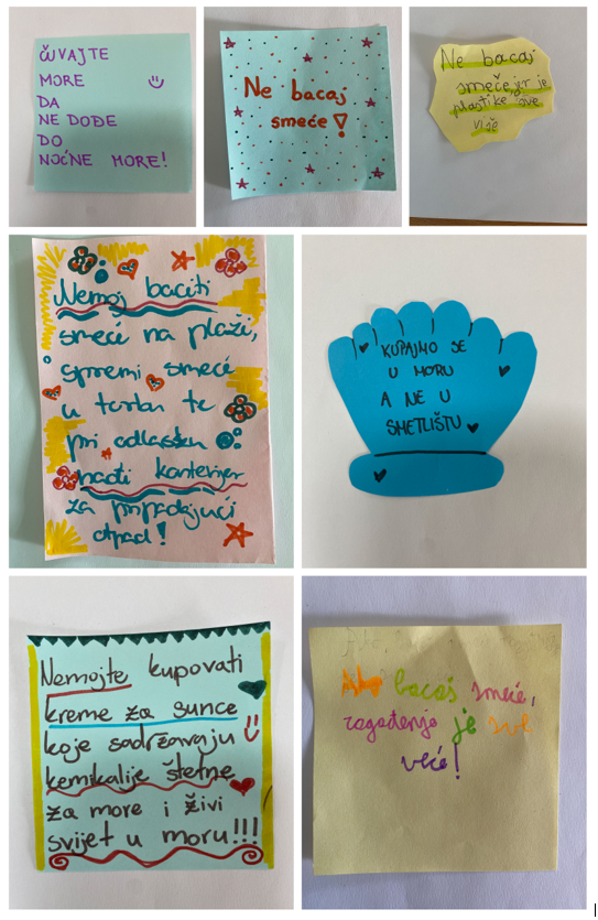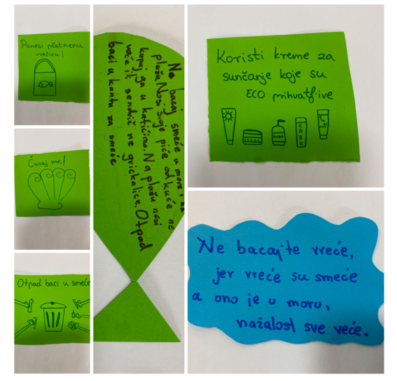 Sudjelovanjem u ovoj radionici učenici su iznosili svoja iskustva i gledali kratke edukativne filmove kako bi došli do odgovora na ova pitanja i izradili prigodne poruke svim posjetiteljima plaža.
