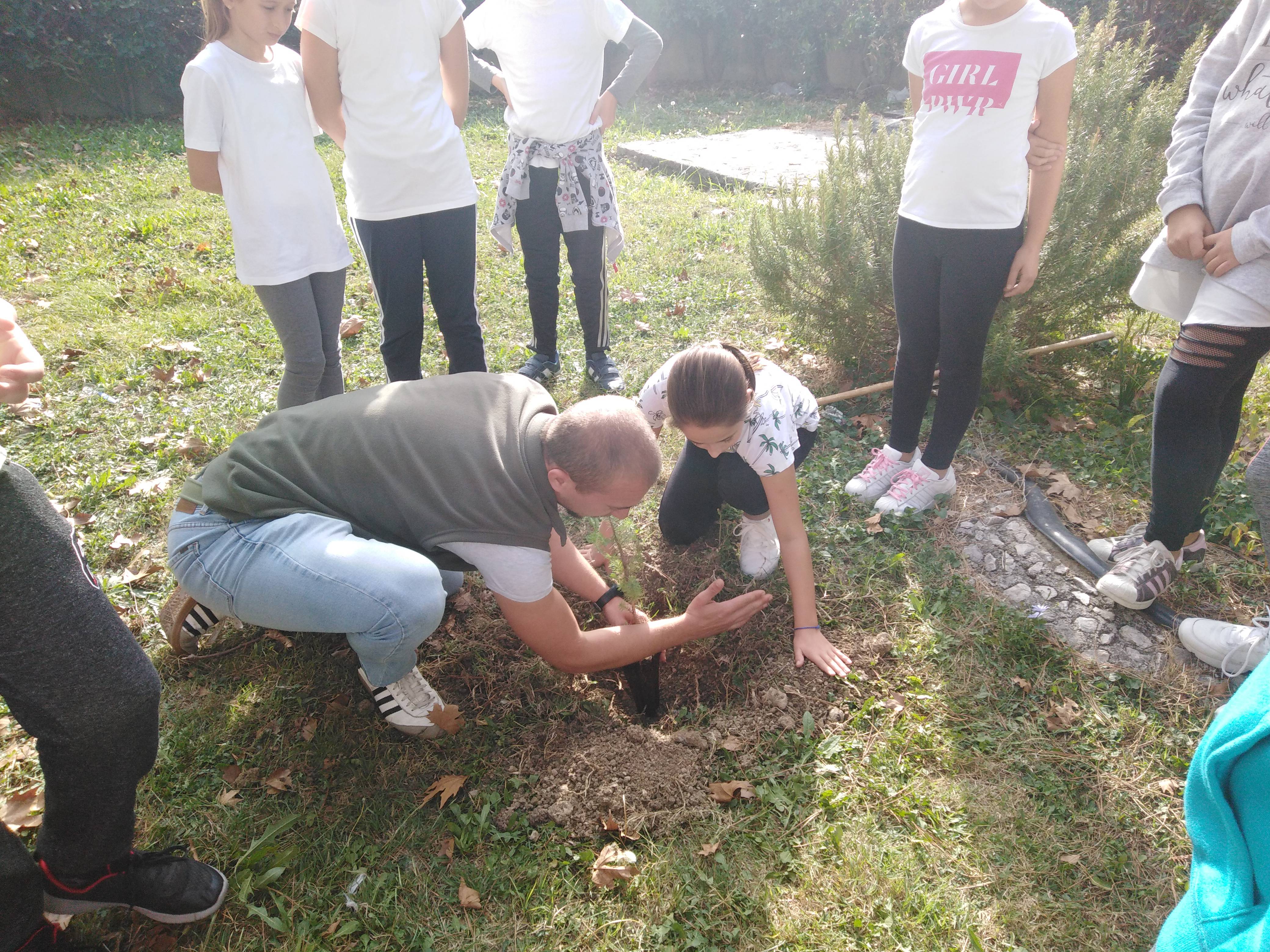 Na kraju su djeca pod vodstvom dipl.ing.Ivana Vidosaljevića u školskom vrtu posadila stablo cedar.