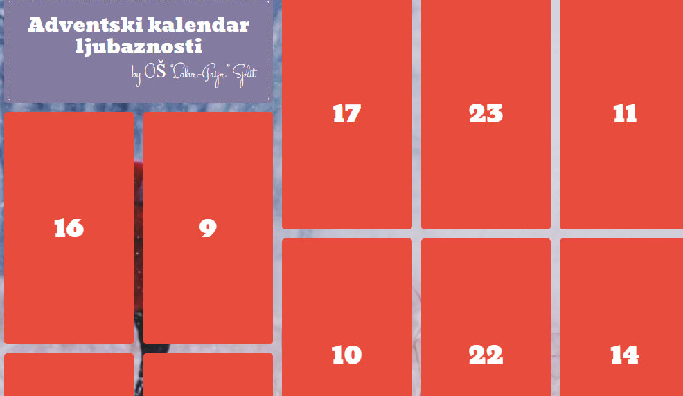 Adventski kalendar ljubaznosti kojega uređuje učiteljica engleskog jezika, Iris Olujić Ljubica otvara svoje prozorčiće 1.prosinca 2021.godine.