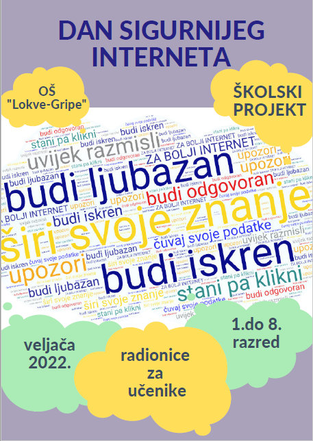 Tijekom veljače u okviru našeg školskog projekta na Satima razrednika od 1.do 8.razreda učenici će se sa svojim razrednicima baviti temama primjerene komunikacije na internetu/društvenim mrežama, video igarama, opasnostima, digitalnim tragovima, online prijateljstvima, elektroničkim nasiljem i posljedicama koje aktivnosti na internetu mogu imati za njihovu budućnost.