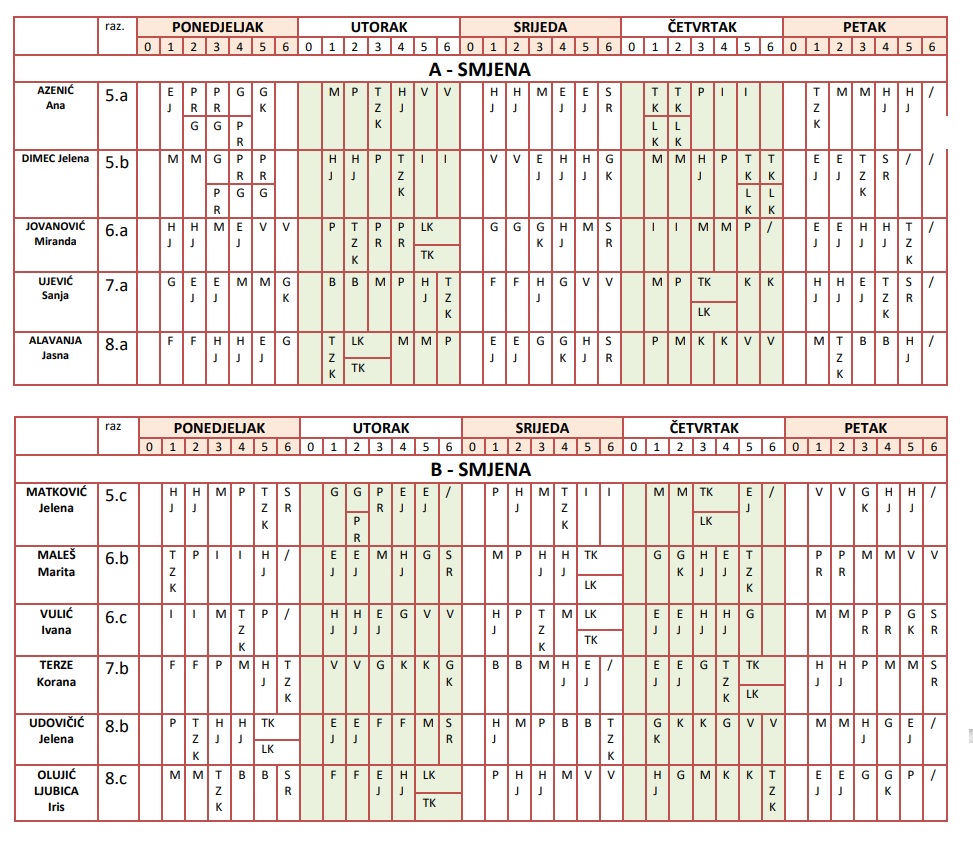 RASPORED SATI ZA ŠKOLSKU GODINU 2022./2023.
