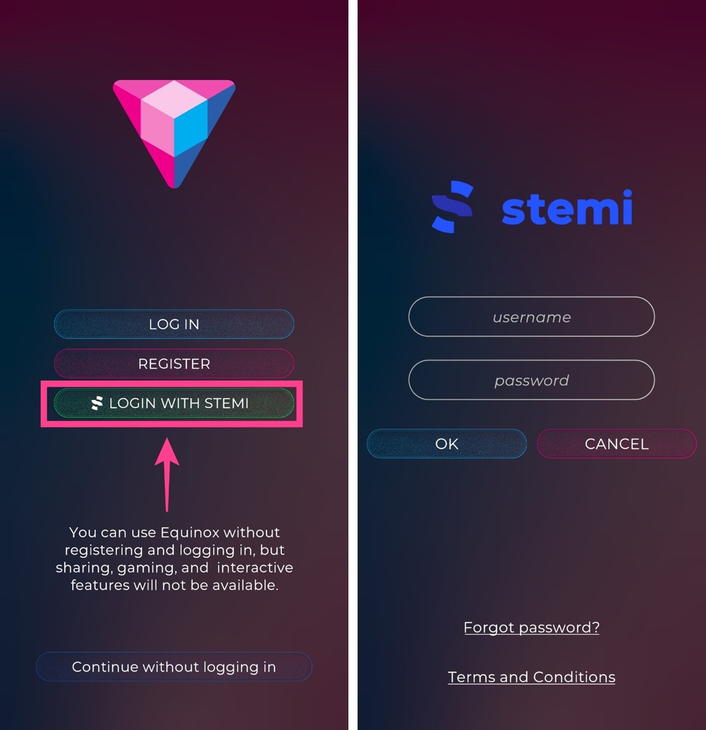 4. Prijavi se! Odaberi opciju Koristi STEMI za prijavu i upiši svoje korisničko ime i lozinku kojom se spajaš na Stemi platformu.