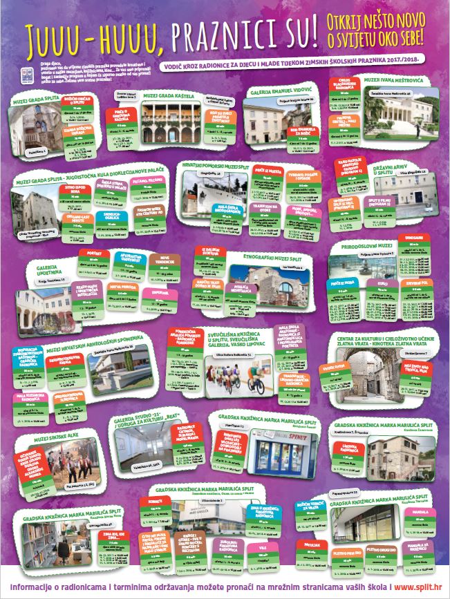 ... Juuu-huuu, praznici su! Otkrijte nešto novo o svijetu oko sebe!Ove godine naziv projekta je promijenjen iz razloga što više ne sudjeluju samo muzejske institucije. U akciji sudjeluje 16 institucija na 20 lokacija s ukupno 60 radionica. Draga djeco i roditelji, pozivamo vas da kvalitetno, zabavno i kreativno iskoristite zimske praznike.