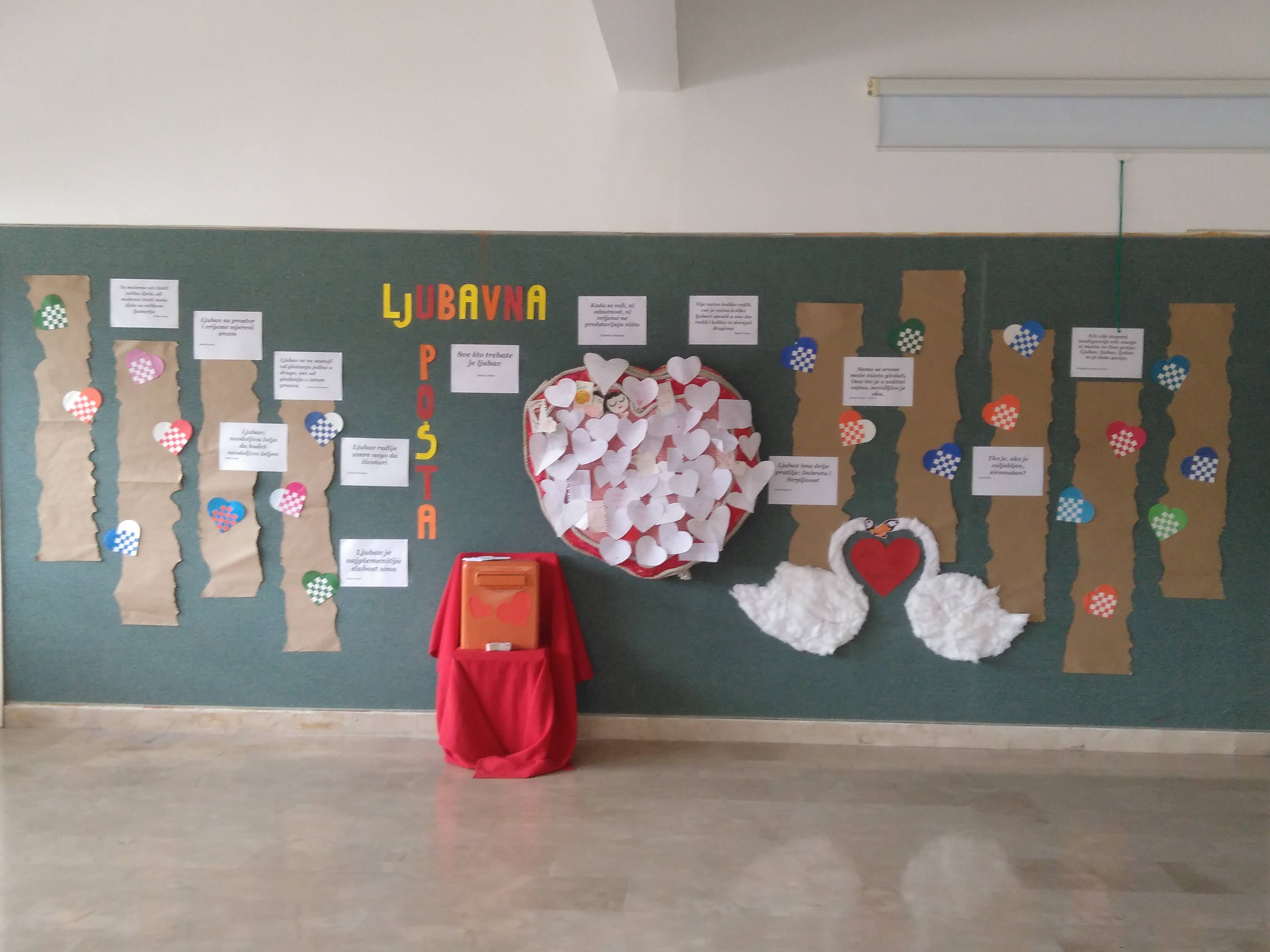 Ove godine Dan zaljubljenih obilježen je u našoj školi pisanjem poruka ljubavi. Učenici su poruke mogli staviti na veliko srce ili ubaciti u poštanski sandučić. Namjera je da se poruke podijele osobama i razredima na koje su naslovljene.