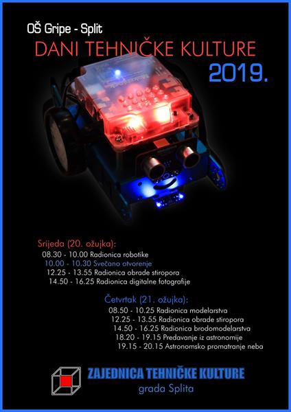 Zajednica tehničke kulture (ZTK) grada Splita organizira u našoj školi Dane tehničke kulture 2019., i to 20. i 21. ožujka.