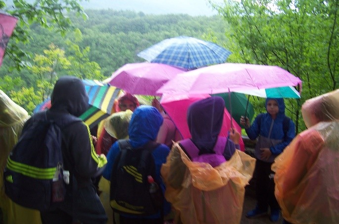 Na Plitvicama smo se pripremili za dugotrajno razgledavanje ali planove nam je pokvarila kiša pa su kape i kratke rukave ubrzo zamijenili kišobrani, kabanice i tople jakete…