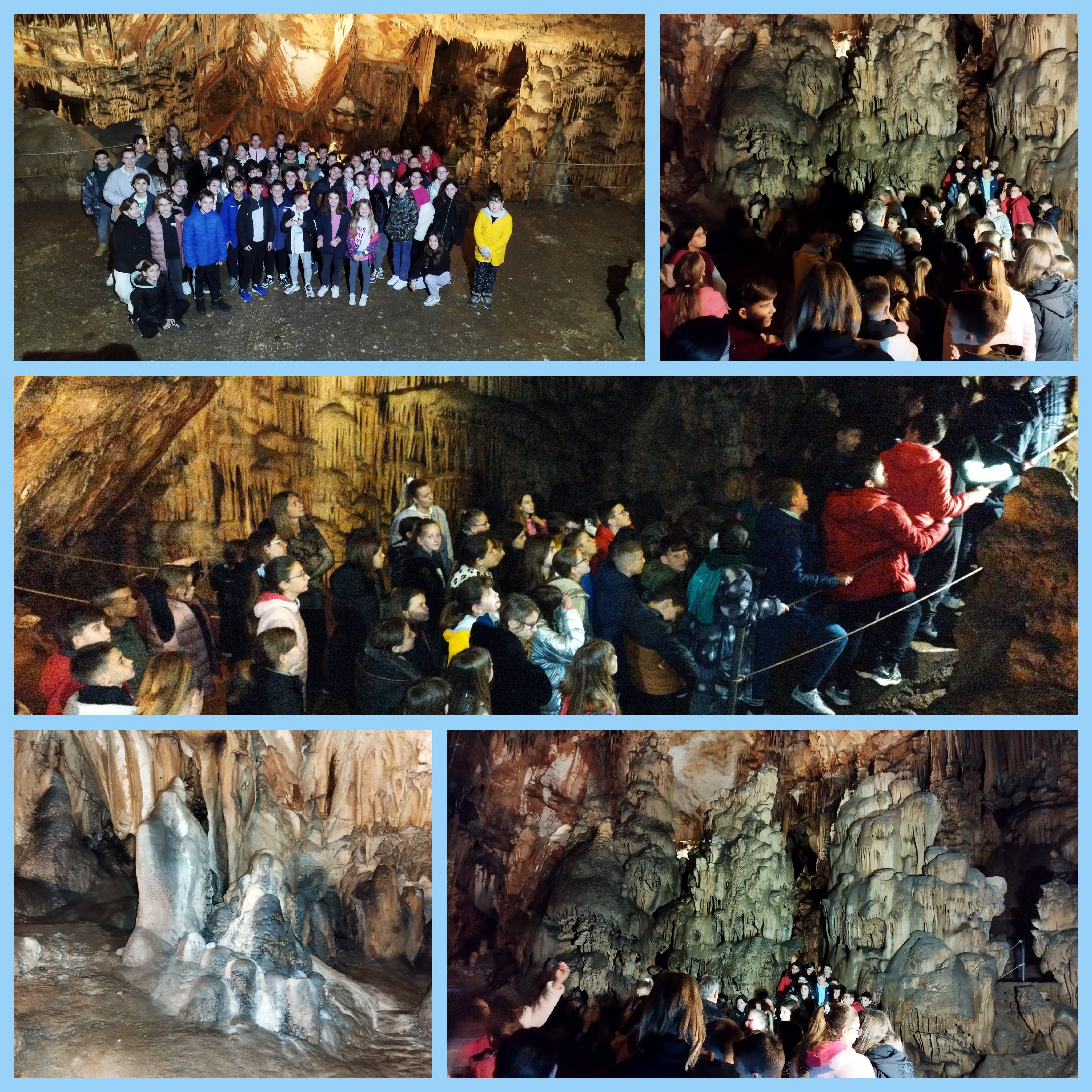 A nakon toga uputili smo se na drugo odredište - u špilju Vranjaču gdje smo imali vodiča, a dio vremena su učenici promatrali "skulpture" i pronalazili razne oblike formirane u stalaktitima i stalagmitima.