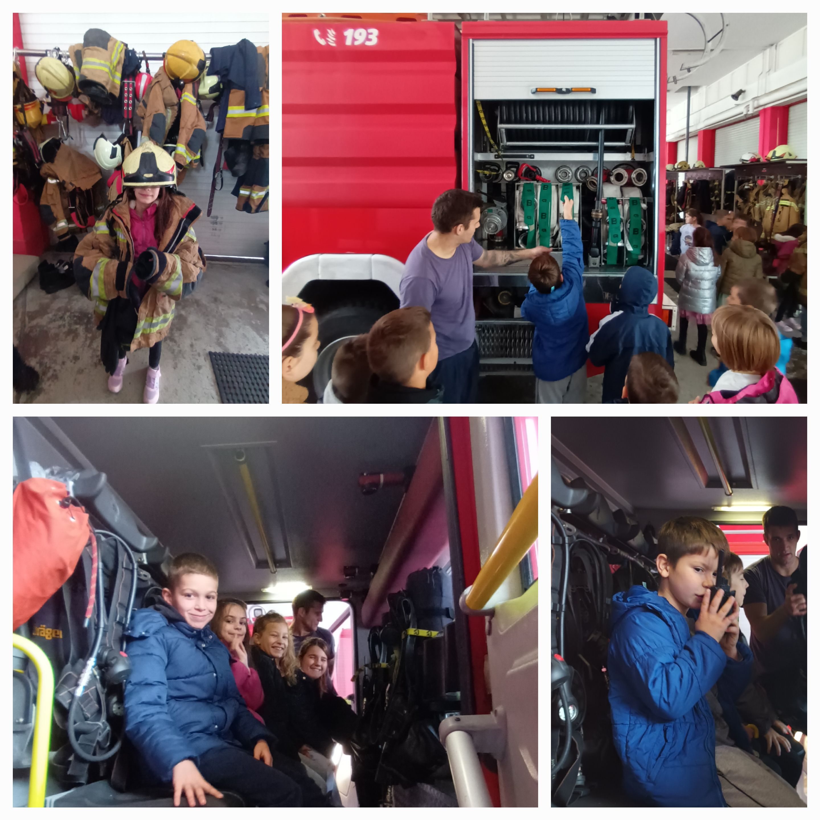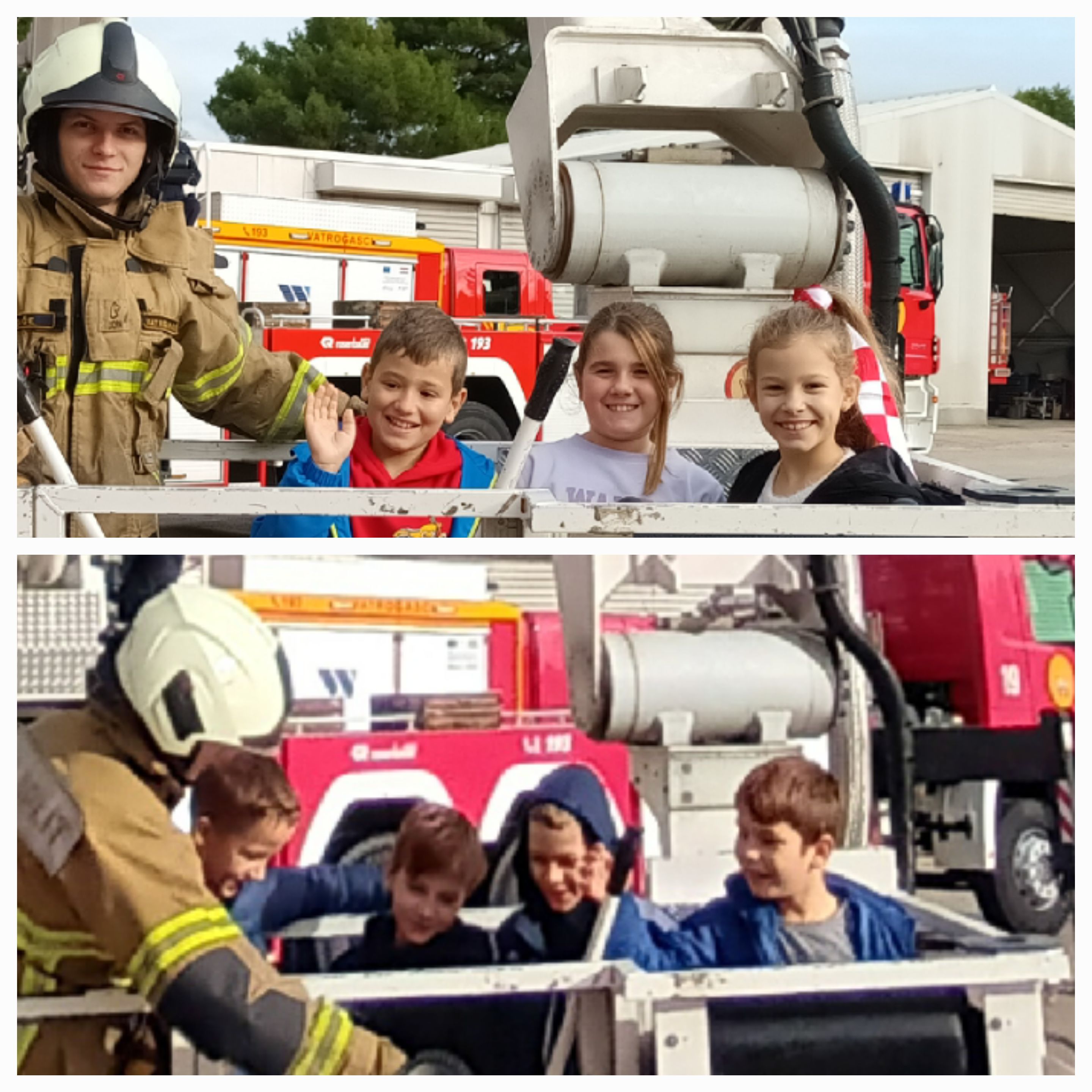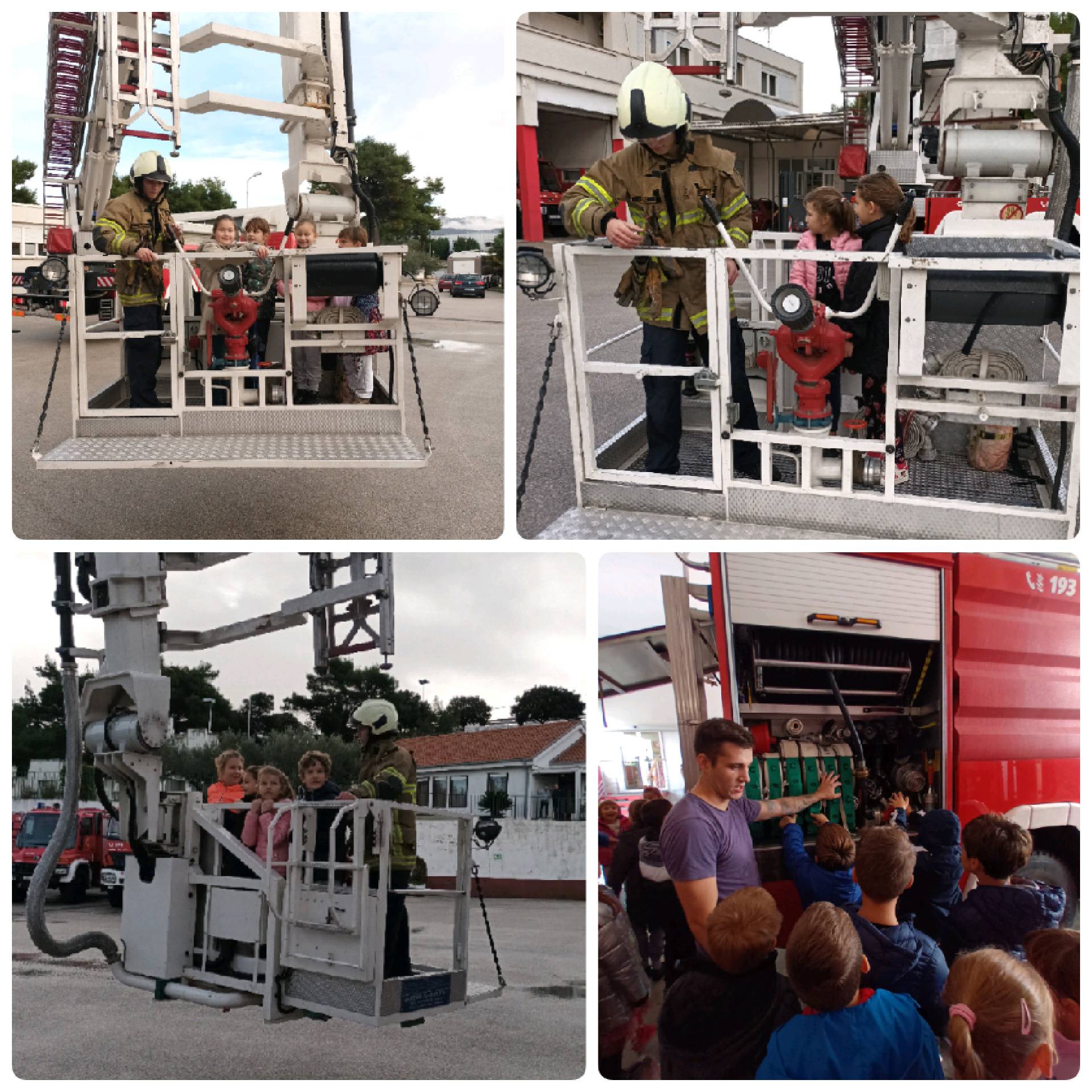Vatrogasci su nas ljubazno dočekali i upoznali sa svojim zanimanjem. Učenici su razgledavali vatrogasna interventna vozila, upoznali i isprobali opremom koju svaki vatrogasac posjeduje, a najveći doživljaj ipak je bio sjesti na prednje sjedalo vatrogasnog vozila i podizanje dizalicom.