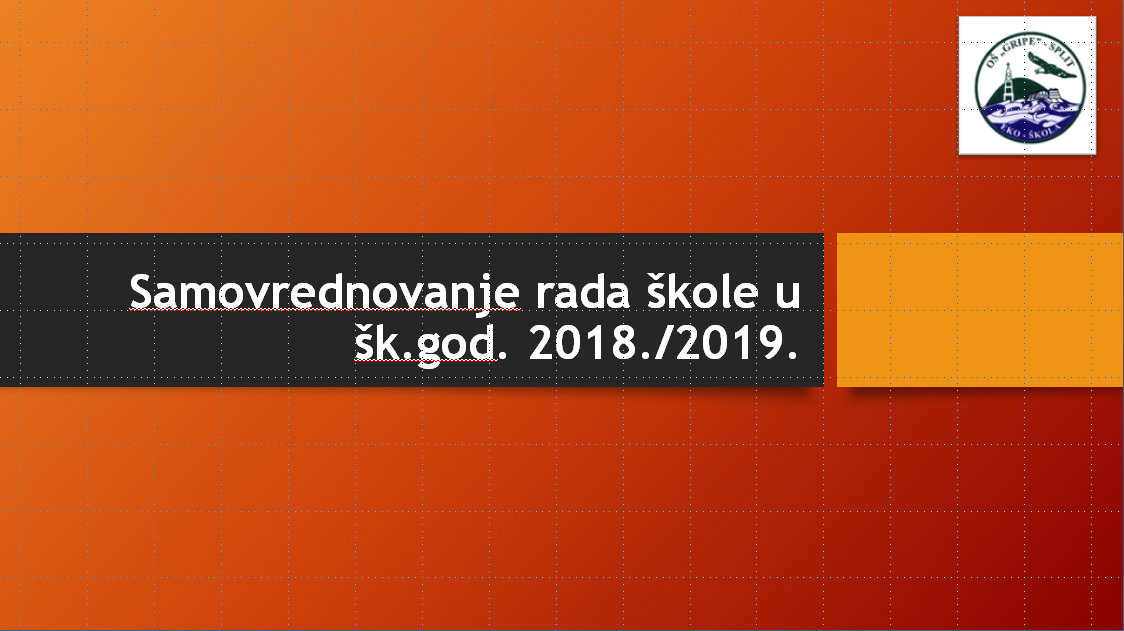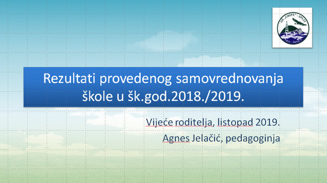 U postupku samovrednovanja rada škole u školskoj godini 2018./2019. prikupljaju se procjene učitelja, učenika i roditelja o pitanjima koja su važna za kvalitetan rad škole u cjelini. Podatci se prikupljaju standardiziranim upitnicima koji se ispunjavaju putem mrežne stranice Škole. O cilju, namjeni i metodologiji samovrednovanja možete se informirati u priloženoj prezentaciji.