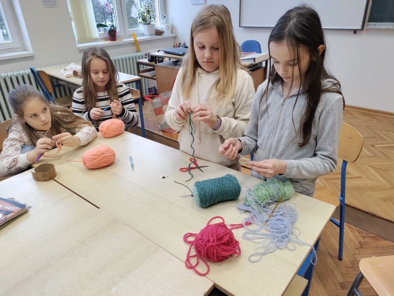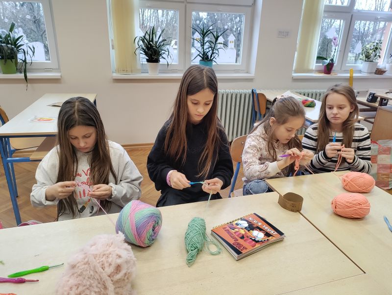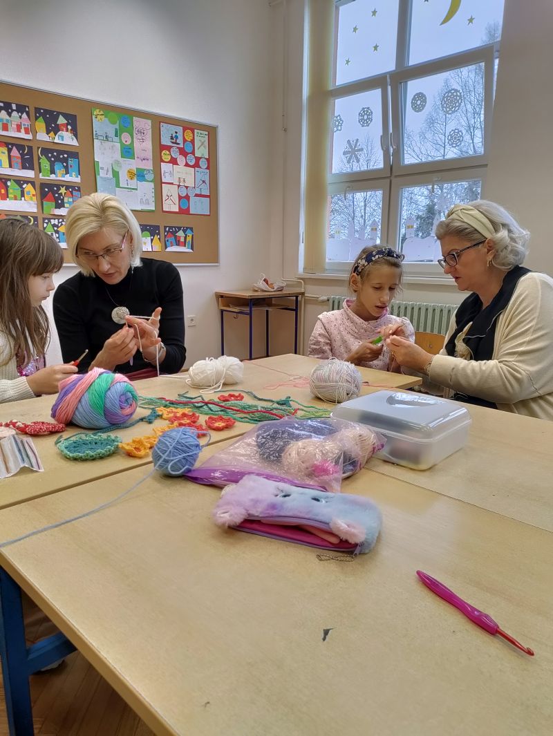Vrijedne ruke učenica koje polaze izvannastavnu aktivnost Ručni rad ovih hladnih dana griju se uz vrući čaj. Heklaju se podlošci za šalice i dočitnice za knjigoljupce te pakiraju u male poklončiće. Uz dobru volju i vješte ruke, mašti nema kraja i zima ubrzo postaje šarena i topla.