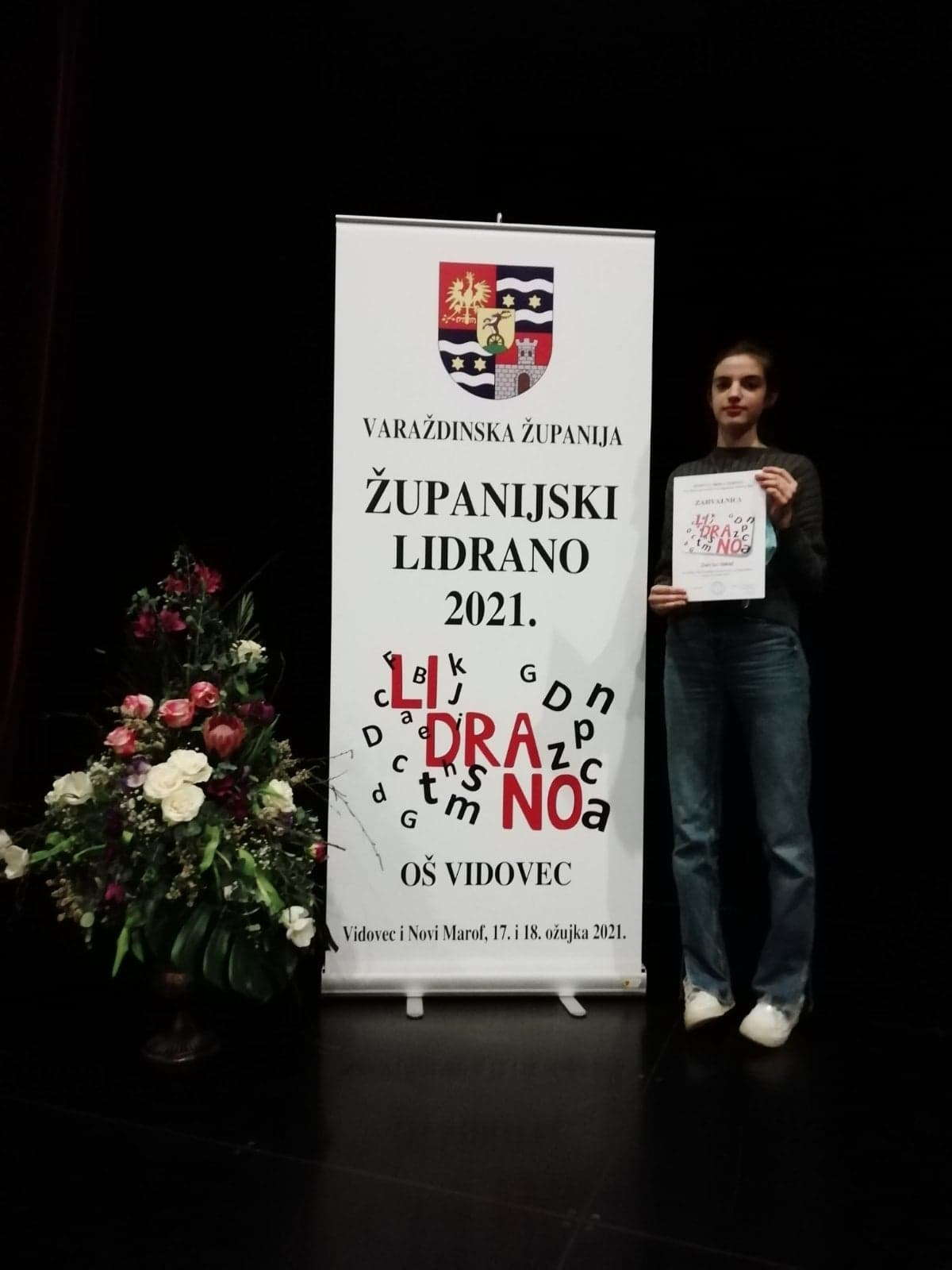 Na županijsku razinu plasirala se radijska emisija naziva U potrazi za riđim mačkom čije su predstavnice novinarka Leonarda Marjanović te snimateljica Ilona Gavez. Mentorica je učiteljica Nataša Sedlar. U kategoriji samostalnih novinarskih radova na županijsku razinu plasirao se putopis Zare Lu Sakač pod nazivom Tragovima Julije. Zara Lu je dobila i posebnu pohvalu Povjerenstva za svoju pjesmu Što je čovjek u kategoriji literarnih izraza. Njezina je mentorica učiteljica Nataša Sedlar. 18. ožujka u Kulturnom centru "Ivan Rabuzin" u Novom Marofu održana je županijska razina za pojedinačne scenske nastupe. OŠ Ludbreg u toj je kategoriji predstavljala Zara Lu Sakač koja je izvela monolog prema djelu Iz velegradskog podzemlja Vjenceslava Novaka. Pripremala ju je učiteljica Ljudmila Kladić. Za svoju je izvedbu primila pohvale stručnog žirija.