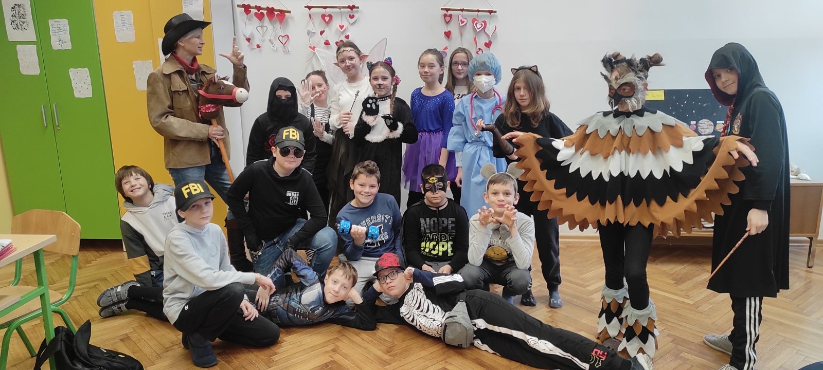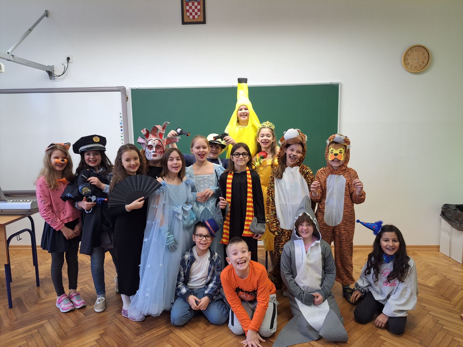 U utorak, 13.2. 2024. školom su zavladale vesele maske čarobnjaka, šumskih vila, klaunova, gusara, kauboja i svakakvih maštovitih likova. Vesele maškare zaplesale su pod šarenim maskama i dobro se zabavile u maskenbalskim igrama koje su za njih pripremile učiteljice razredne nastave.