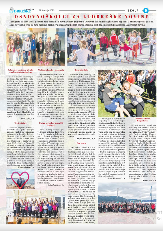 U 144. broju Ludbreških novina jedna je stranica posvećena našim člancima u kojima smo pripremili pregled školskih događanja u ožujku i travnju. Uživajte u listanju!