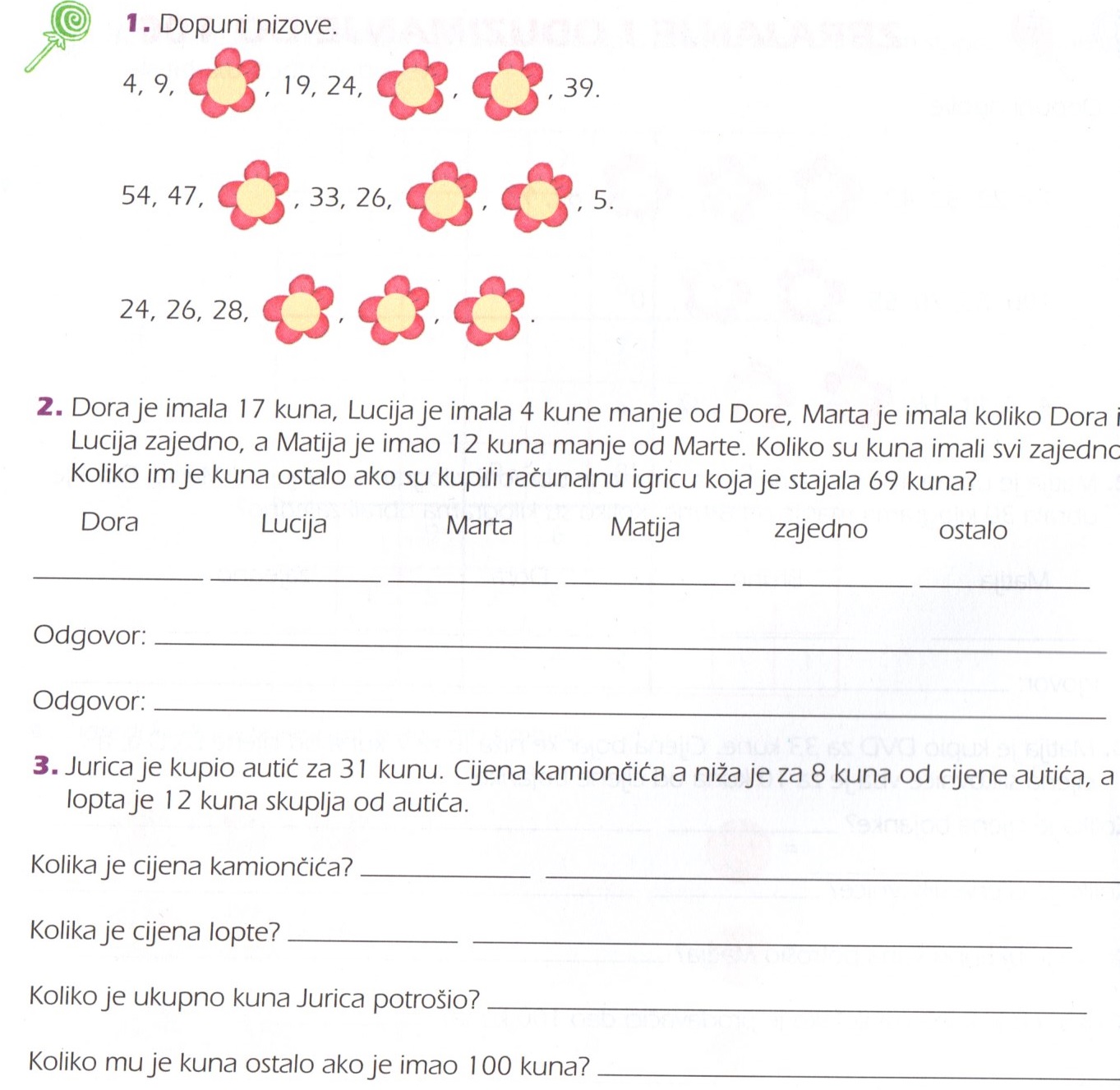 Zadatke ne moraš prepisivati, a odgovore napiši u bilježnicu iz matematike.