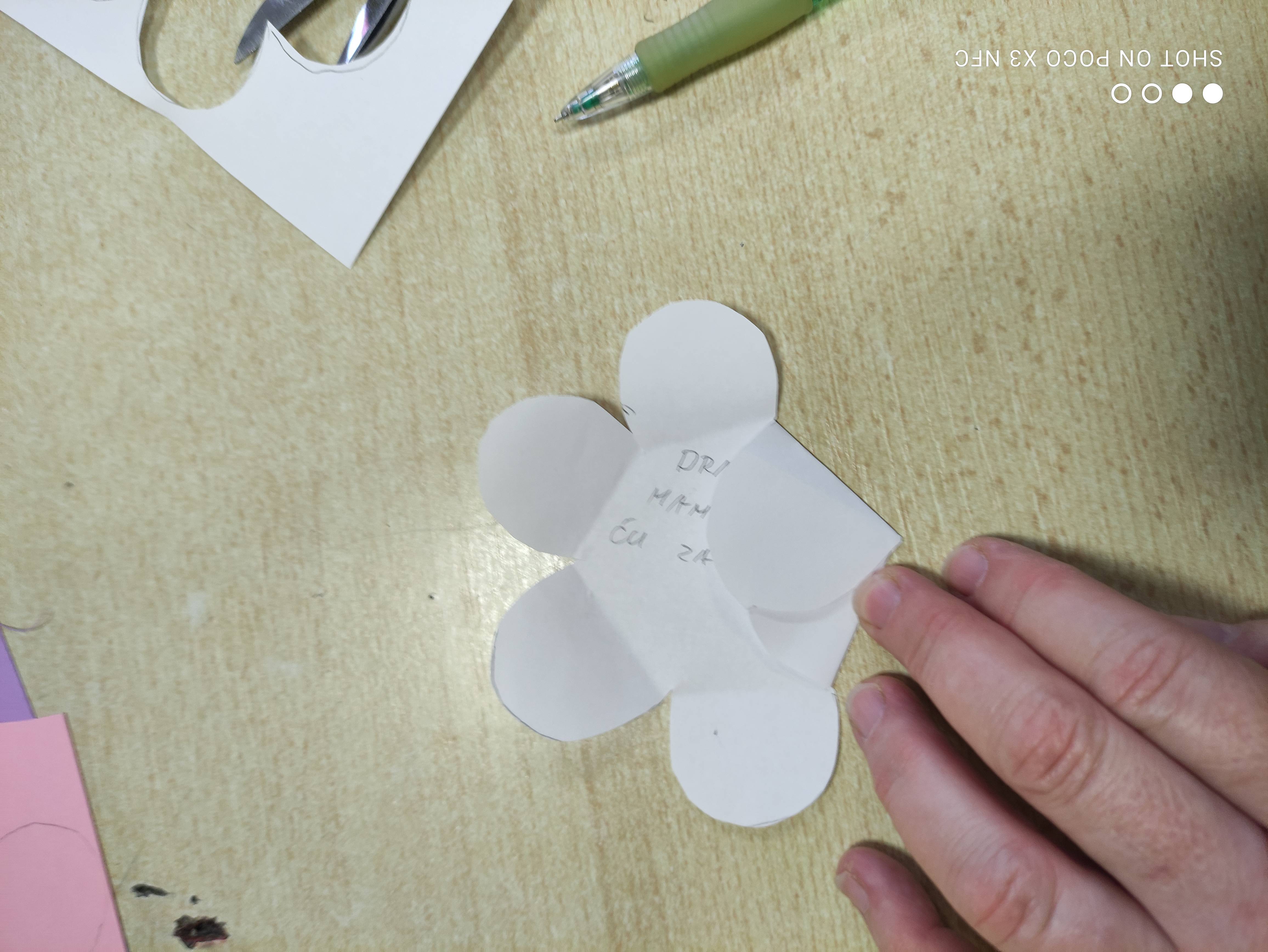 6. Kada mama stavi papirić u tanjurić s vodom, otvorit će se u cvijet i otkriti koju tombolu je izvukla za taj dan. (Možeš jedan više izrezati i isprobati pa da vidiš.)