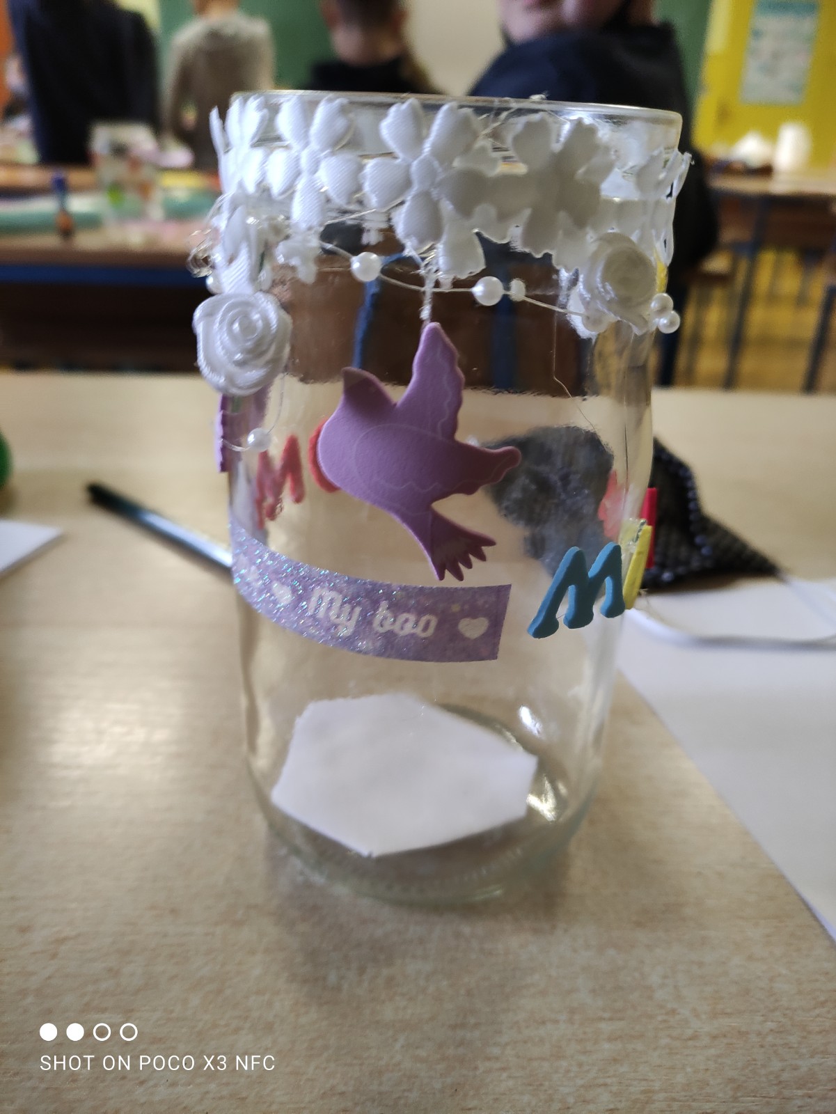 - razni ukrasi kojima ćeš ukrasiti staklenku