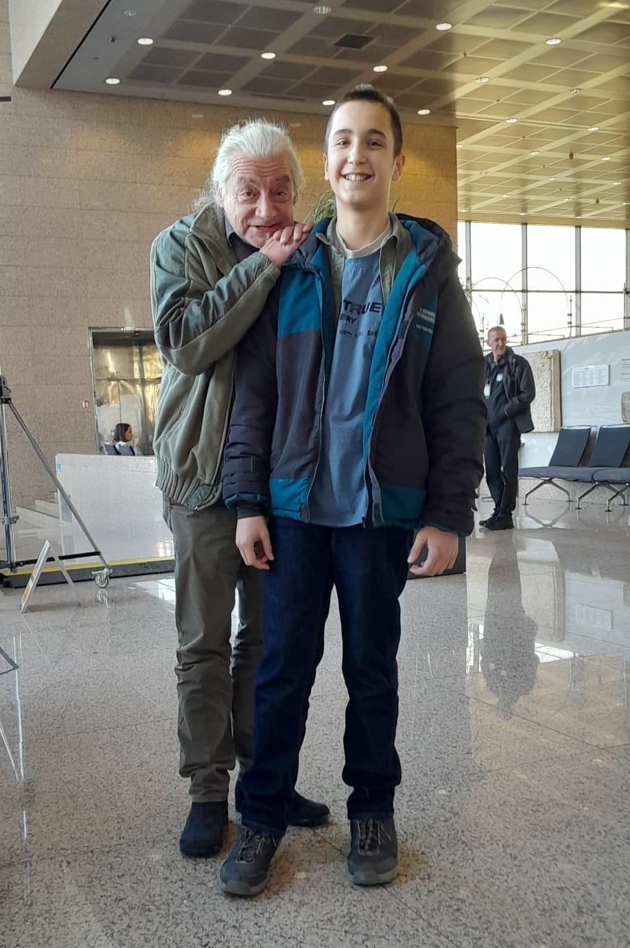 Učenik Florijan Jambrak ispred zgrade NSK i u društvu pisca Igora Rajkija