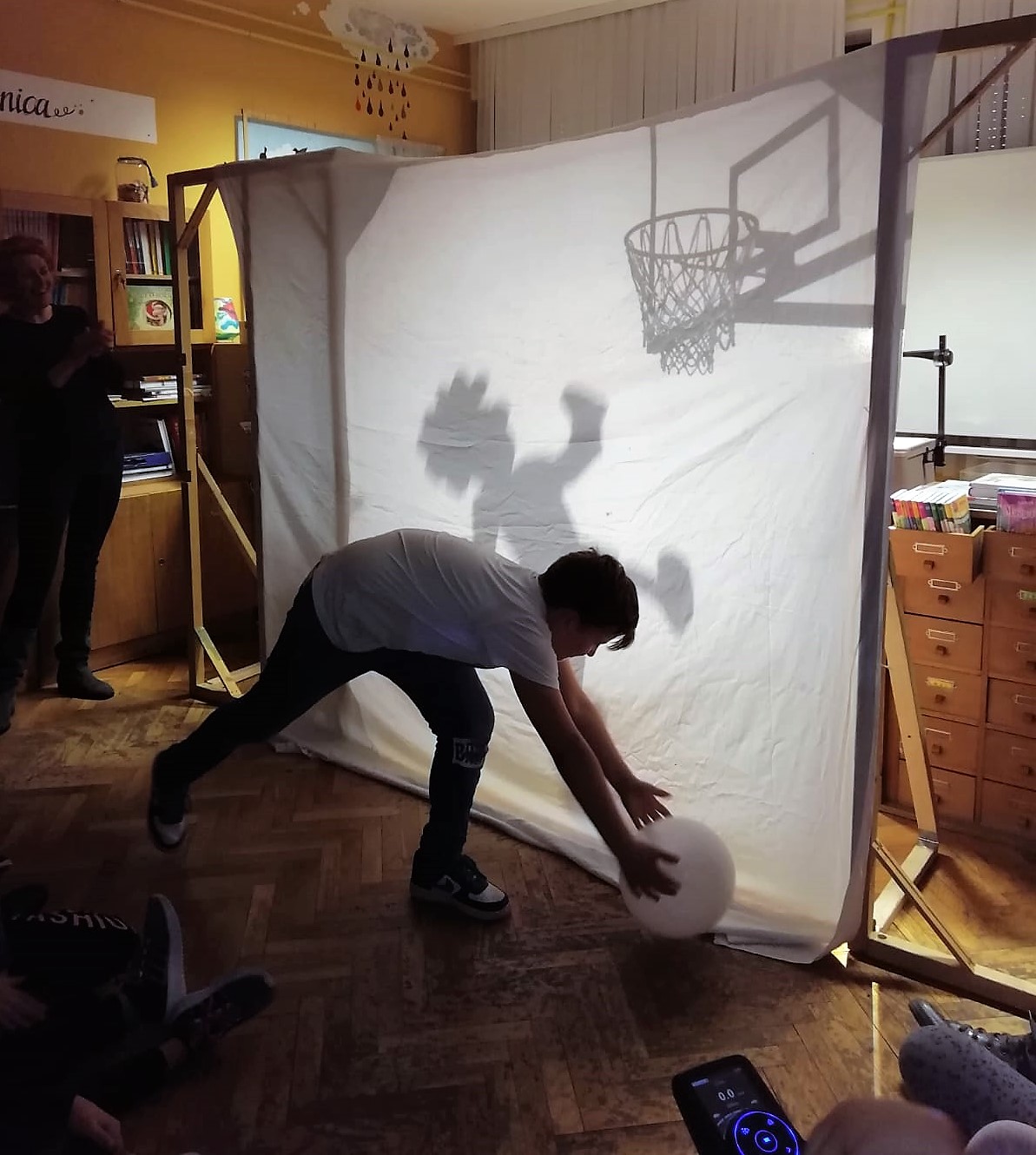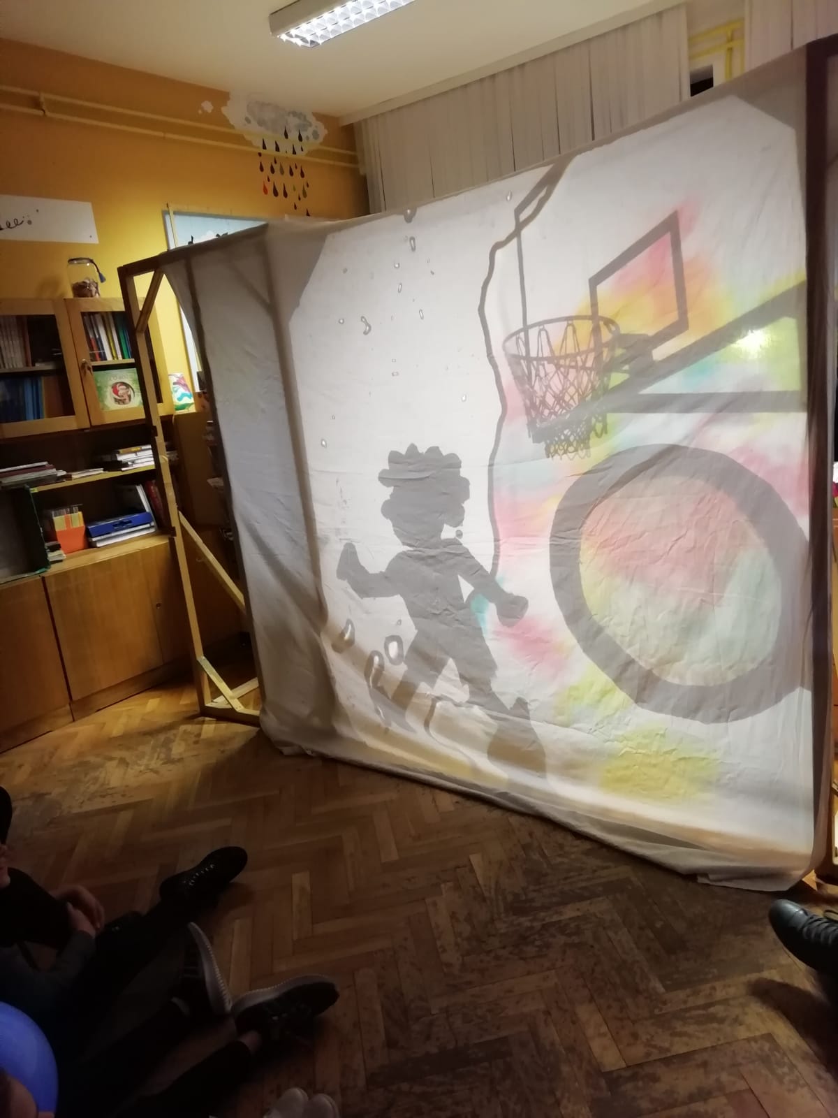 U knjižnici se mobili pričvršćuju na konstrukciju koju je pomogao izraditi domar Franjo Marić i učitelj vjeronauka Juraj Gelemanović. Za postavljanje lustera u dvoranu zaslužan je cijeli tim, a osobito domar čije su nas penjačke sposobnosti ostavile bez teksta. Izrađeno je oko 100 mobila te potrošeno 350 m žice i 13 m2 papira.