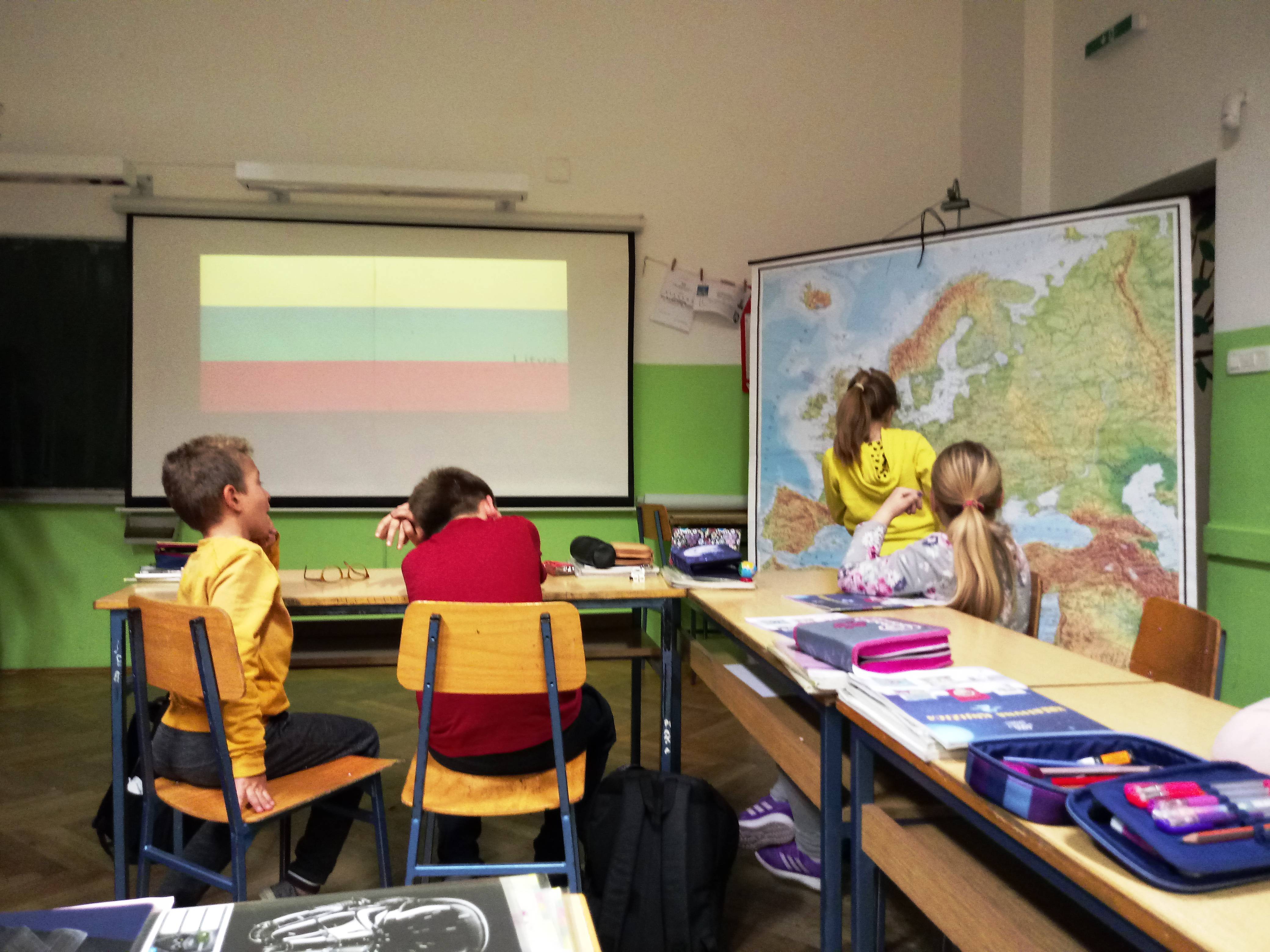 "Jeste li probali kobasice od krumpira?" Obzirom da su nam za kraj ostala dva litvanska pisca, odlučile smo u suradnji s prof. Sanjom Oćašić Huljev male učenike upoznati s Litvom, njenim geografskim, demografskim i kulturološkim obilježjima. Samu prezentaciju priprelila je i vodila starija suučenica Ema Mudrić. Zahvaljujemo se profesorici i suučenici na izuzetno dobrom, kvalitetnom i zabavnom druženju.