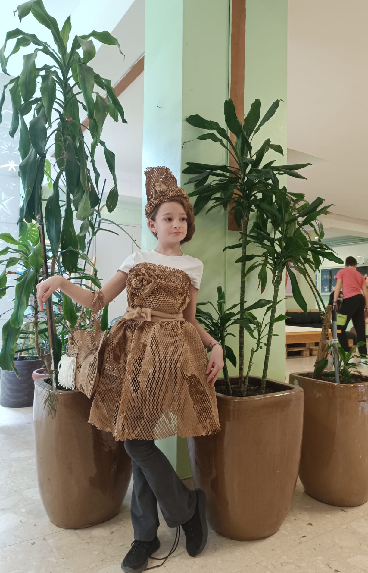1. U aktivnost koja je imala za cilj potaknuti učenike na održivost suradnja je ostvarena s učiteljicom Jasminkom Udiljak i polaznicima Kreativne grupe. Učenici su od didaktički neoblikovanog materijala dizajnirali haljinu, torbu i šešir.