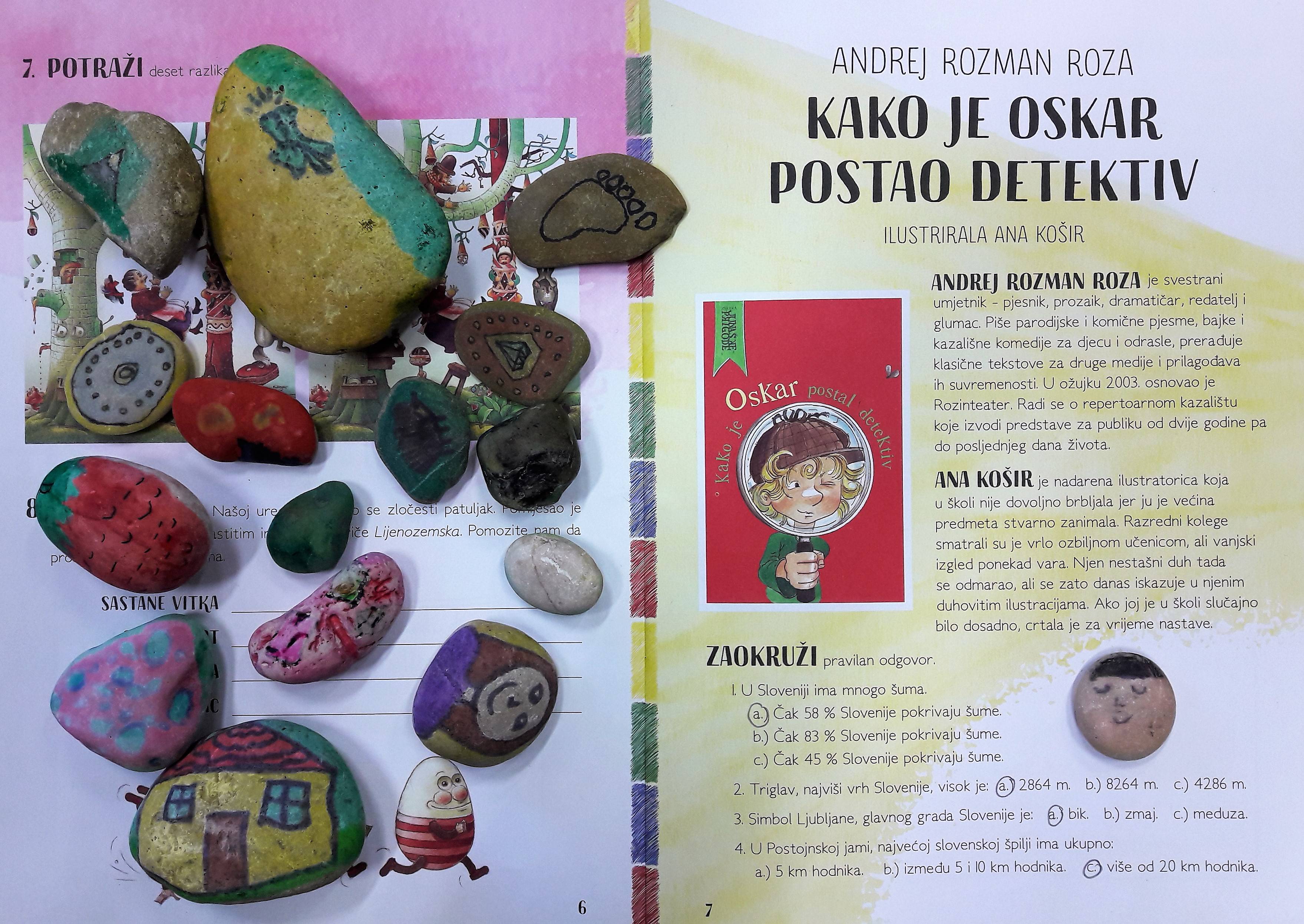 Riječ je o aktivnost za učenike koja se odnosi na upoznavanjem zbirke priča slovenskoga autora Andreja Rozmana Roza Kako je Oskar postao detektiv. Učenici imaju zadatak pronaći sumljivo kamenje po principu "ovaj kamen me podsijeća na..." . Odabrani kamen oslikavaju kako bi naglasili njegovu povezanost s nečim, a u razredu prezentiraju, odnosno, razotkrivaju "sumljivca".