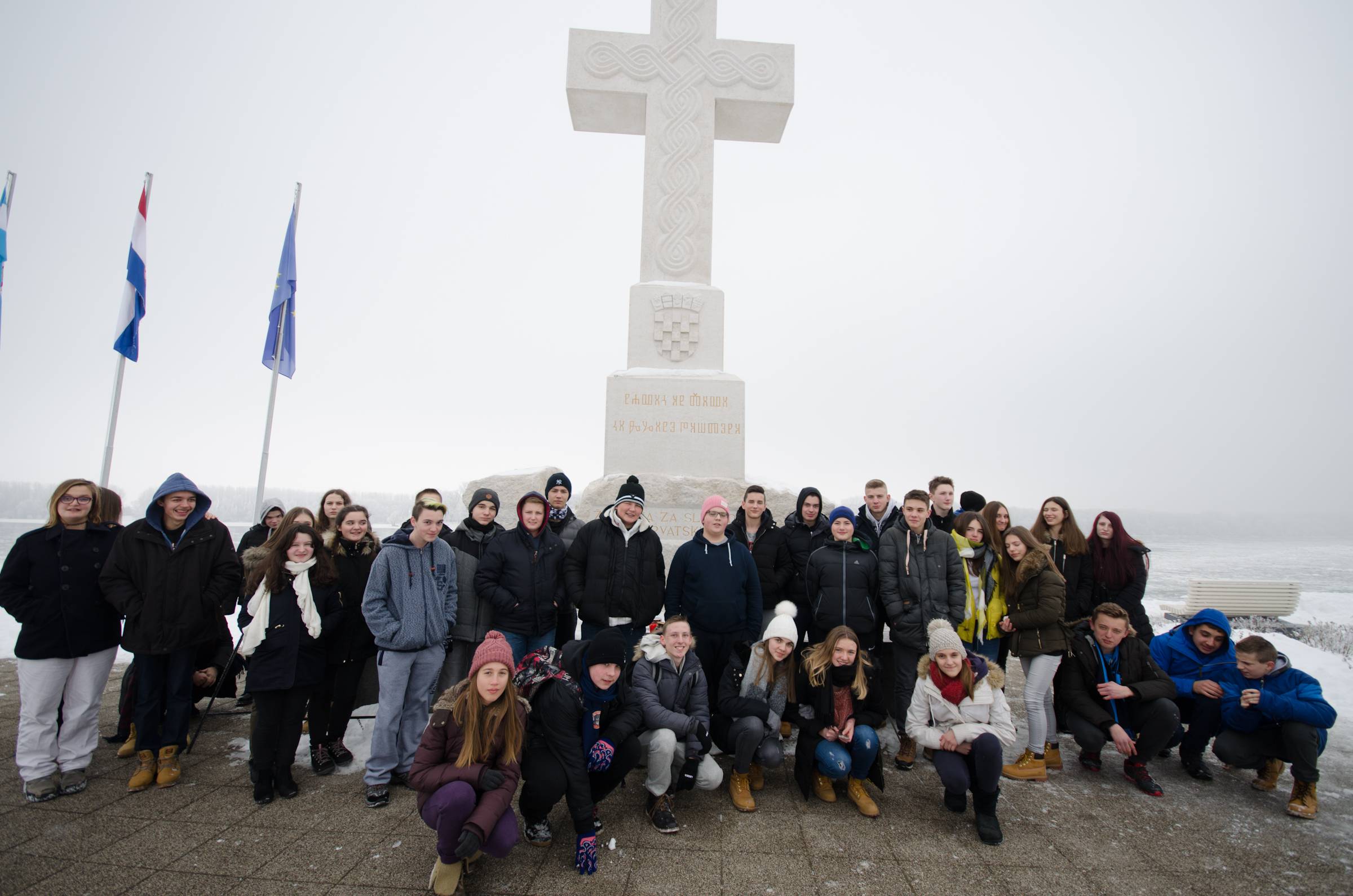 24. siječnja 2017. krenuli smo na dvodnevnu terensku nastavu u Vukovar. Budući da do Vukovara ima četiri sata vožnje, već smo u 4:15 morali biti ispred škole. Ušli smo u autobus, ali nismo baš bili pričljivi. Razbudili smo se tek na odmorištu, gdje smo susreli učenike ostale četiri škole koje su također krenule u Vukovar.